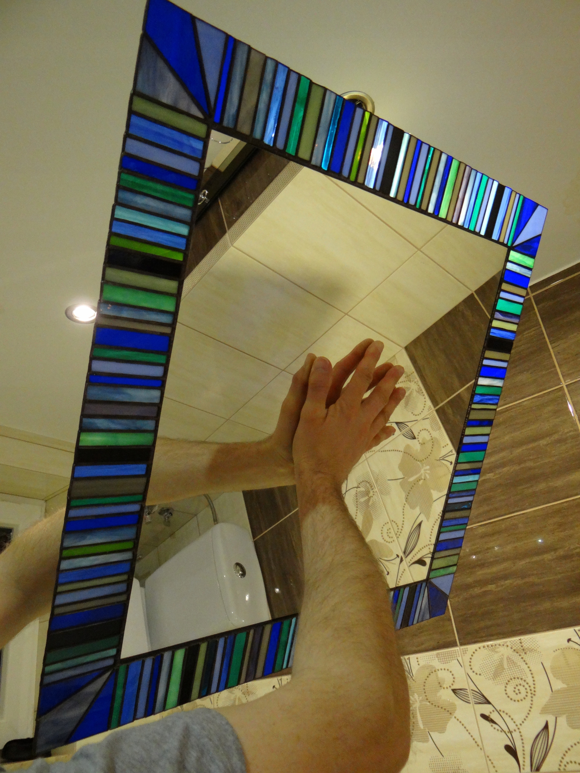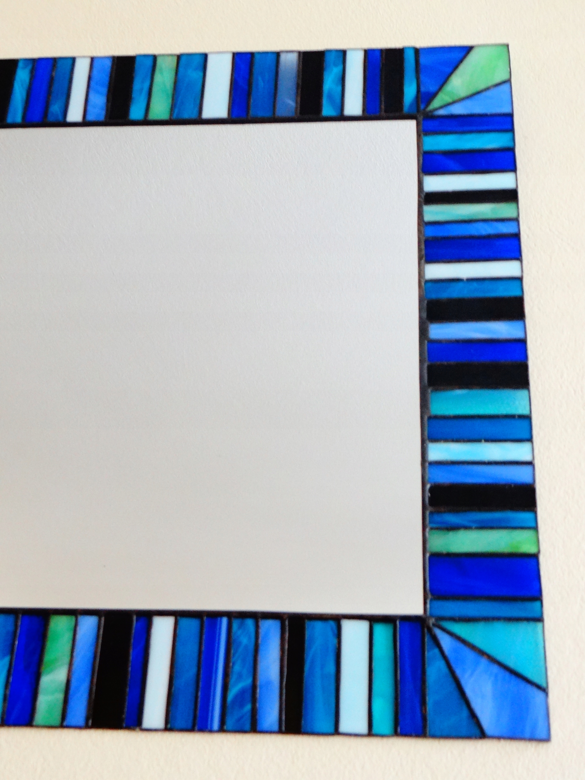 Mozaika lustro witrażowe Paski Witraż turkus błękit Lustro łazienkowe styl