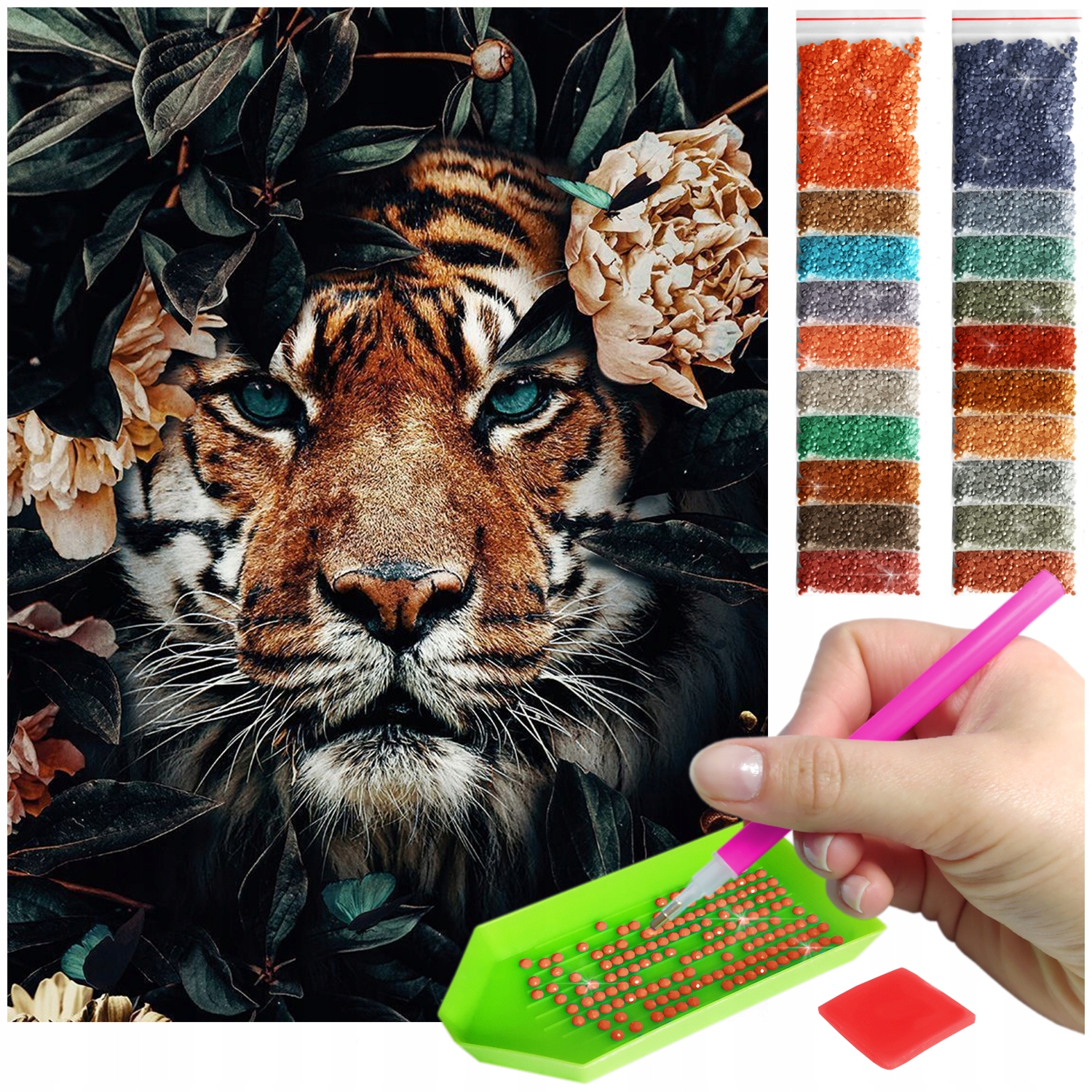 Діаманти - їх понад 11 000. У кольорах, що відповідають обраному малюнку. Кожен відтінок упакований в окремий пакетик і позначений цифрами, щоб компонування було простим і приємним. Набір містить приблизно на 20 відсотків більше кристалів, ніж насправді потрібно. На всякий випадок, якщо ви втратите кілька штук :)