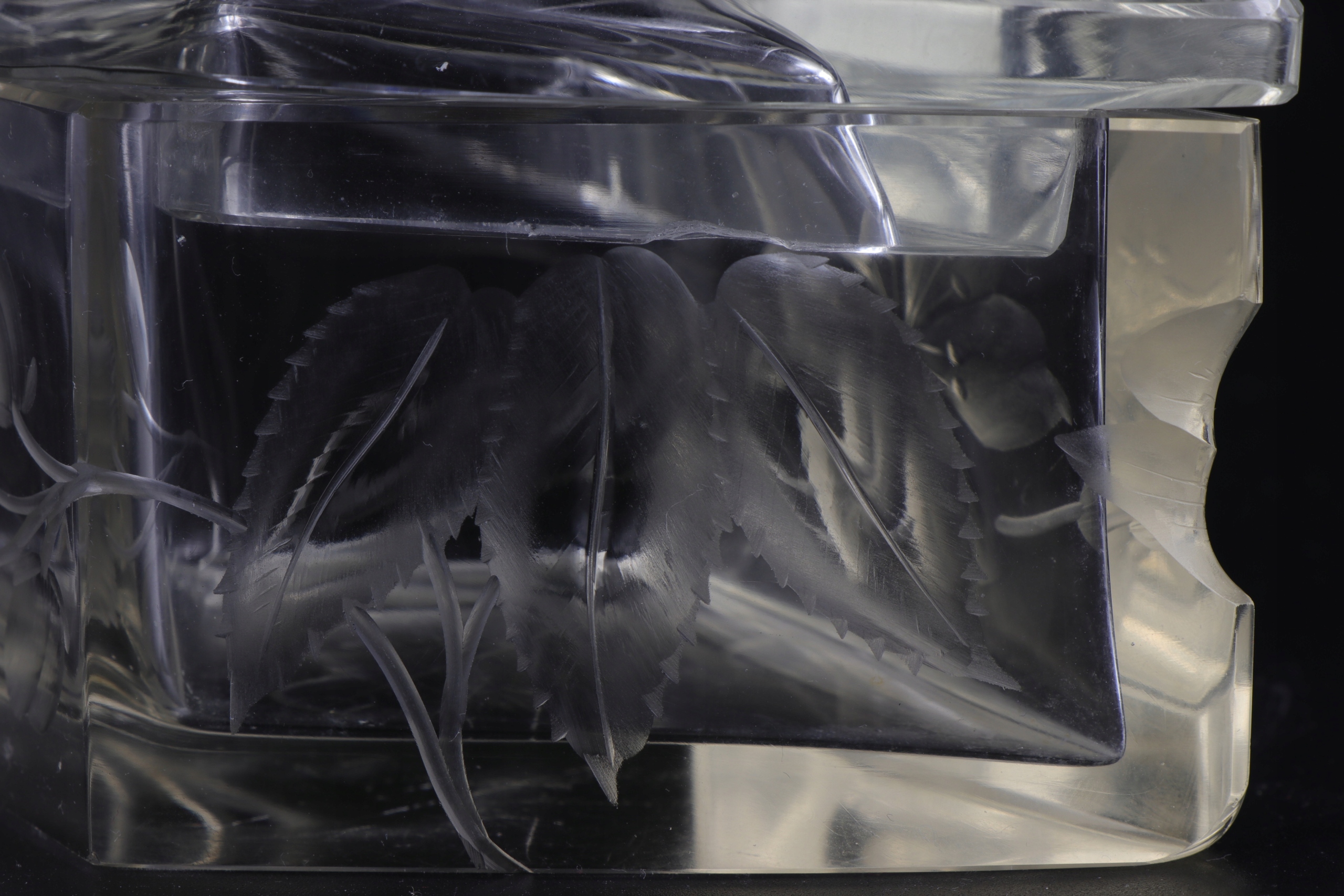 Дуже цікава та рідкісна коробка цукерок Moser, прикрашена вирізаним візерунком ірисів та маків. Бонбоньєрка не підписана, але вироби з подібним огранковим декором виготовлені лише компанією Moser.