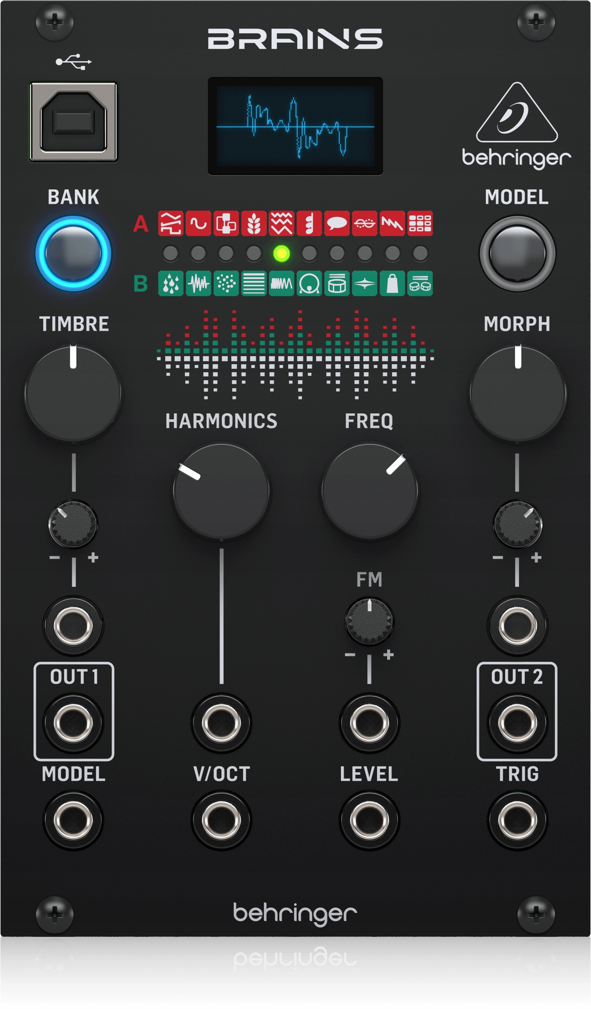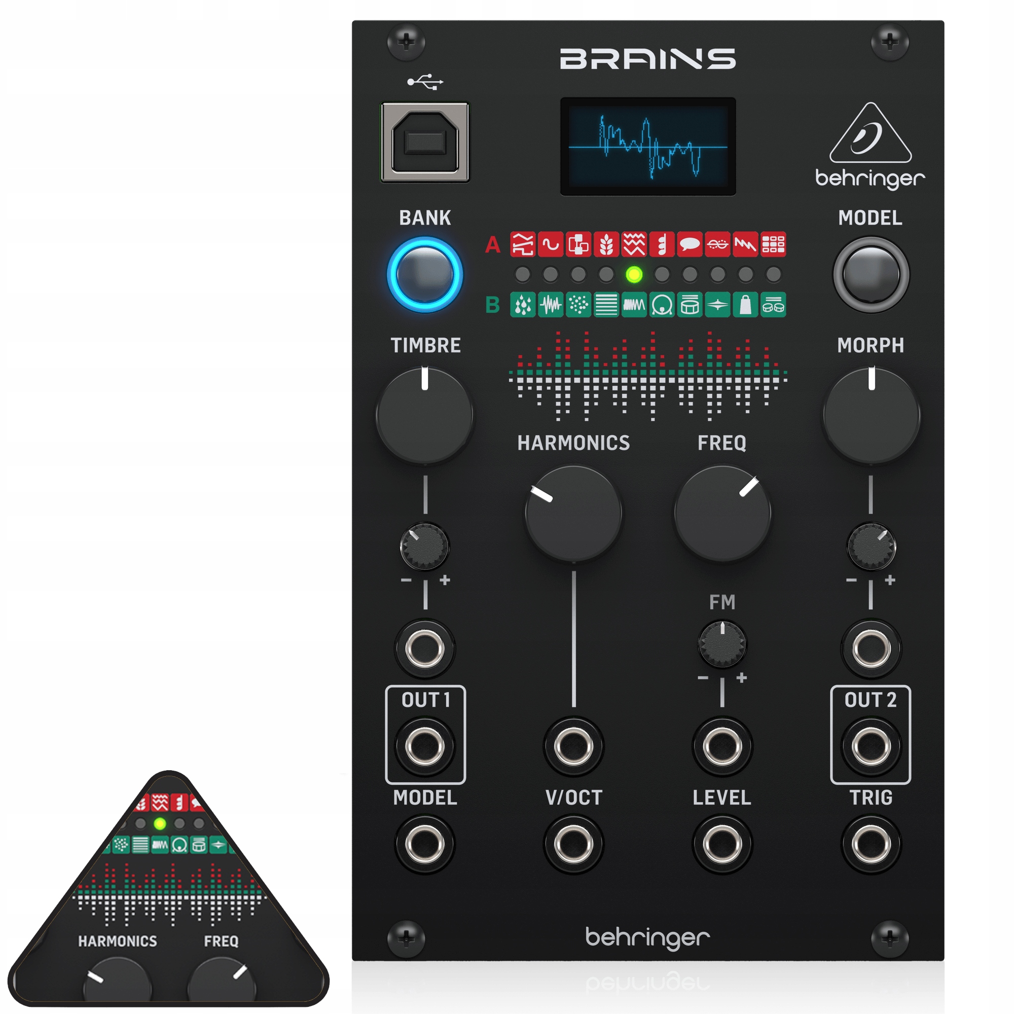 Бехрінгер -мозок - це надзвичайно універсальне джерело цифрового звуку для створення ударних звуків, проводів та басів, а також дронів та звукових шаф. Завдяки двадцяти режимам осцилятора, включаючи безліч різних контрольних двигунів, ви отримуєте безліч різних звуків та кольорів, все, щоб створити дикі та дивовижні звуки з акордами, гармонічним коливанням, молекулярним шумом, аналоговими звуками, Вербла, Hi-Hat і навіть мовою. Тимбр, гармоніки, частота та морф, які можна використовувати для регулювання кожної з 20 моделей синтезатора. Просто виберіть режим активного синтезатора за допомогою кнопки моделі, а потім почніть перетворювати ручку, щоб змінити символ джерела звуку, поки ви не отримаєте потрібний звук. Встановіть будь -який з 20 двигунів синтезатора, а також генератори ударних та шуму, такі як віртуальний аналог, хвиля, фм, зерна, дощ, шум, пил, модальні струни, бас, сітка або привітна шапка, щоб генерувати темні пульсуючі шматочки, яскраві та зшивання тонів, що дійсно дихає, що дихає, що дихає, що виводить у вас музику.