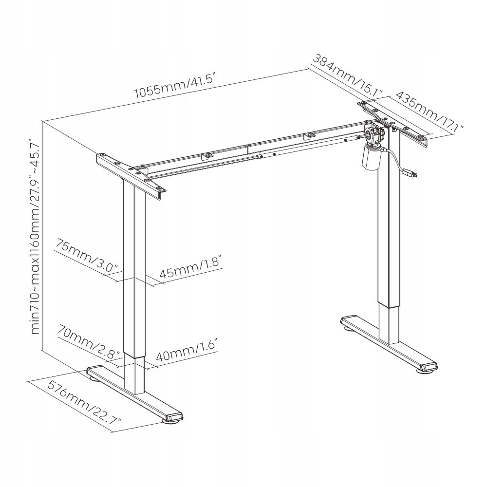 Mozos EDF-PRO - це базова модель каркаса столу від польського виробника. Відмінний вибір для людей, які працюють в офісі або вдома. Це сучасне і функціональне рішення, яке дозволяє регулювати висоту стільниці (не входить в комплект) в залежності від індивідуальних потреб користувача. Максимальна вантажопідйомність 80 кг. Це оптимальна вага, що забезпечує великий запас вантажопідйомності різної комп'ютерної та офісної техніки. Завдяки використанню інноваційної технології електричного управління конструкцію можна легко регулювати на різну висоту, що дозволяє користувачам працювати в зручному та ергономічному положенні. Це ідеальний вибір для людей, які проводять багато часу за комп'ютером або виконують роботу, що вимагає тривалого сидіння, і хочуть піклуватися про своє здоров'я. Висота стільниці регулюється від 71 до 116 см, що дозволяє змінити робоче положення на стояче. У комплект входить інтуїтивно зрозуміла панель управління з дисплеєм.