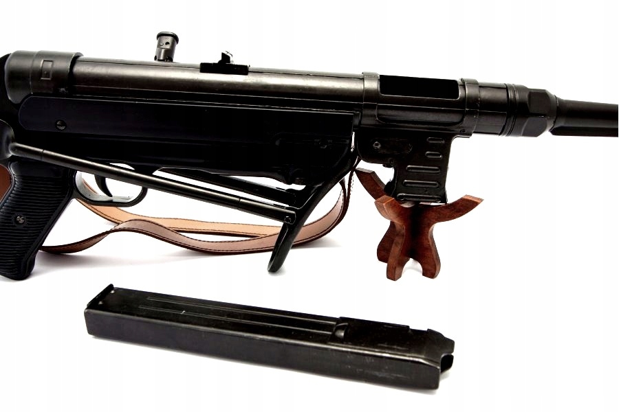 Репліка виготовлена зі ZnAl - сплаву цинку та алюмінію. Репліка оснащена робочим вільним замком, за допомогою якого після перетягування повзунка в заднє положення можна виконувати т.зв. сухий постріл. Захист зброї - після відтягування затвора рукоятка піднімається вгору - положення позначене літерою "S". Ців'я і пістолетна рукоятка виготовлені з чорного матеріалу, що імітує ебоніт. Знімний коробчастий магазин, що вивільняється натисканням кнопки, без пружини всередині та натискної пластини, в оригіналі місткістю 32 патрони, розташовані в шаховому порядку. Приклад металевий з рухомою спинкою, відкидний - складається під зброю при відпущеній кнопці блокування. Прицільні пристосування, що складаються з мушки з кришкою і світлобійного прицілу. Шкіряний, світло-коричневий, вшитий, суцільний ремінь з функціональним простим регулюванням довжини. Естетичний спосіб з'єднання елементів, кріпильні гвинти практично непомітні.