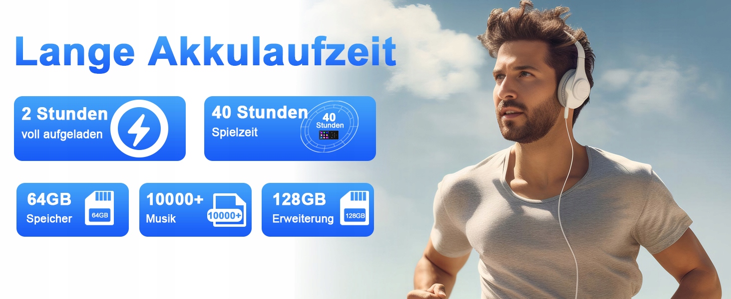 4 Підтримує більшість аудіо форматів: mp3/wma/wav/ape/flac/aac-lc/m4a/ogg. Відмінний звук робить його незамінним пристроєм для захоплених слухачів. ✈ 64 ГБ внутрішньої пам’яті та можливість розширити до 128 ГБ пам'яті: побудована -in 64 ГБ пам'яті, на якій ви можете зберігати до 1000 пісень та книг. Якщо вам потрібно більше місця, ви також можете використовувати TF -карту потужністю максимум 128 ГБ для розширення. Попрощайтеся з невеликою пам’яттю.