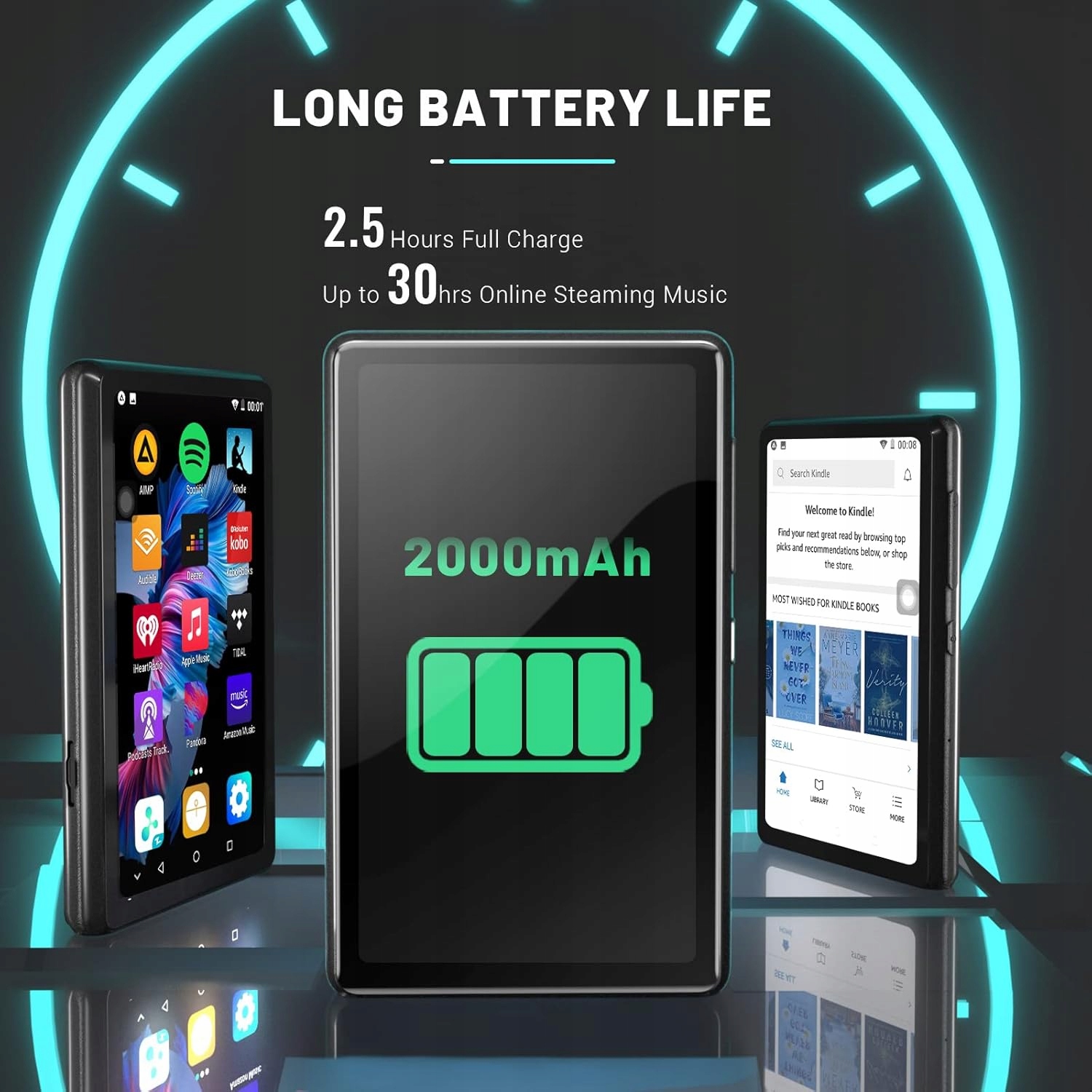 Довгий час автономної роботи: вбудований акумулятор ємністю 2000 мАг із зарядним портом USB-C 2,5 години після повного заряду. годин відтворення музики в автономному режимі. Крім того, цей музичний плеєр має функцію таймера автоматичного вимкнення, яка забезпечує довшу функцію енергозбереження в режимі очікування.