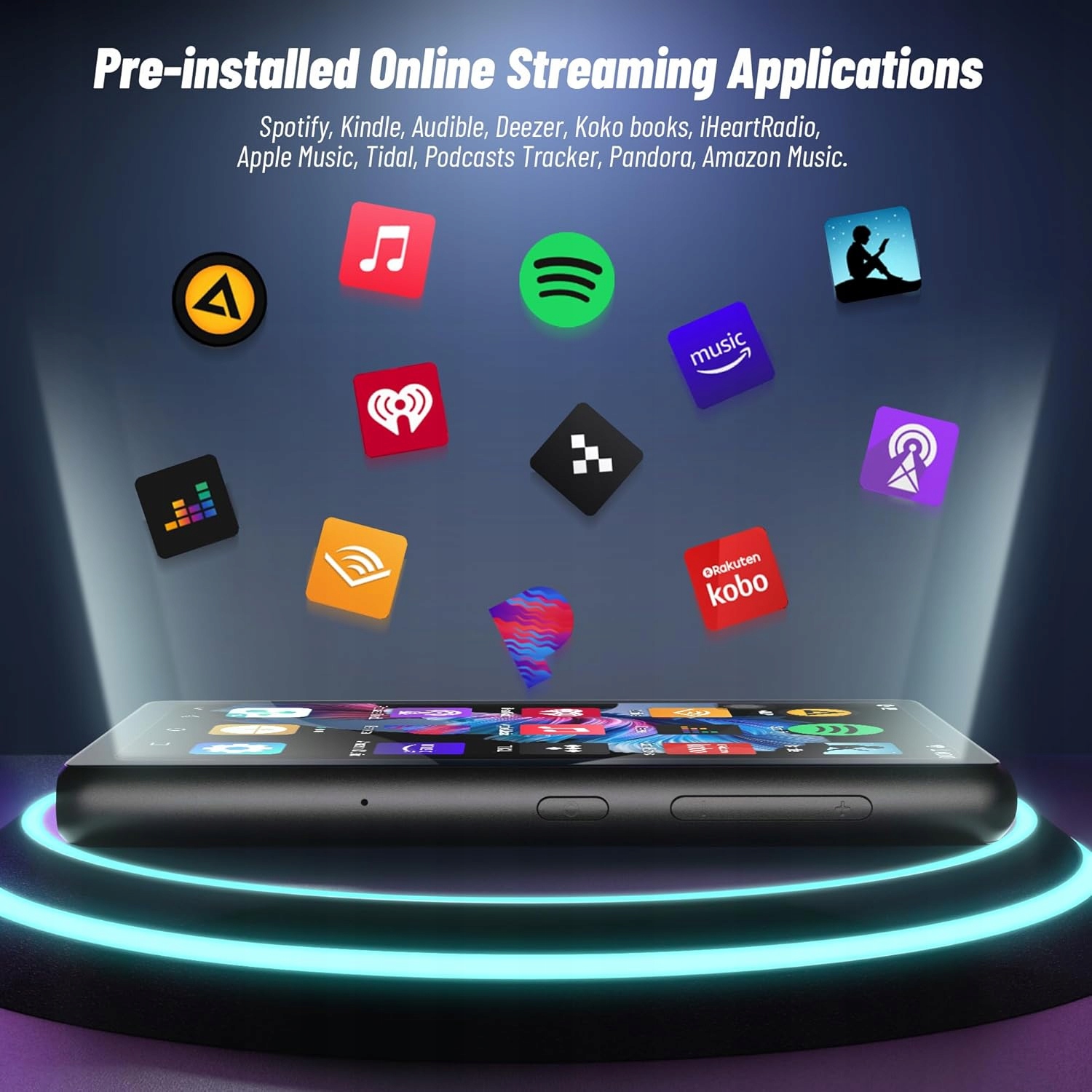 Bluetooth MP3-плеєр, попередньо встановлені Spotify, Audible, Amazon Music і підтримка завантаження APK, браузер (знімний), ядро MTK8, Android 8.1, 4.0" IPS до 1 ТБ
