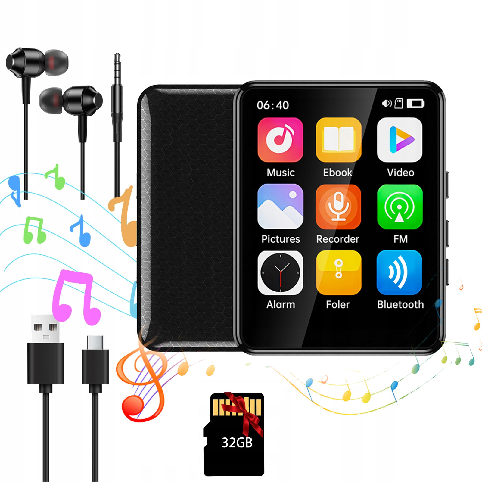 MP4-ПЛЕЄР BLUETOOTH FM-РАДІО HIFI НАВУШНИКИ ПОРТАТИВНЕ МЕНЮ + карта 32 ГБ