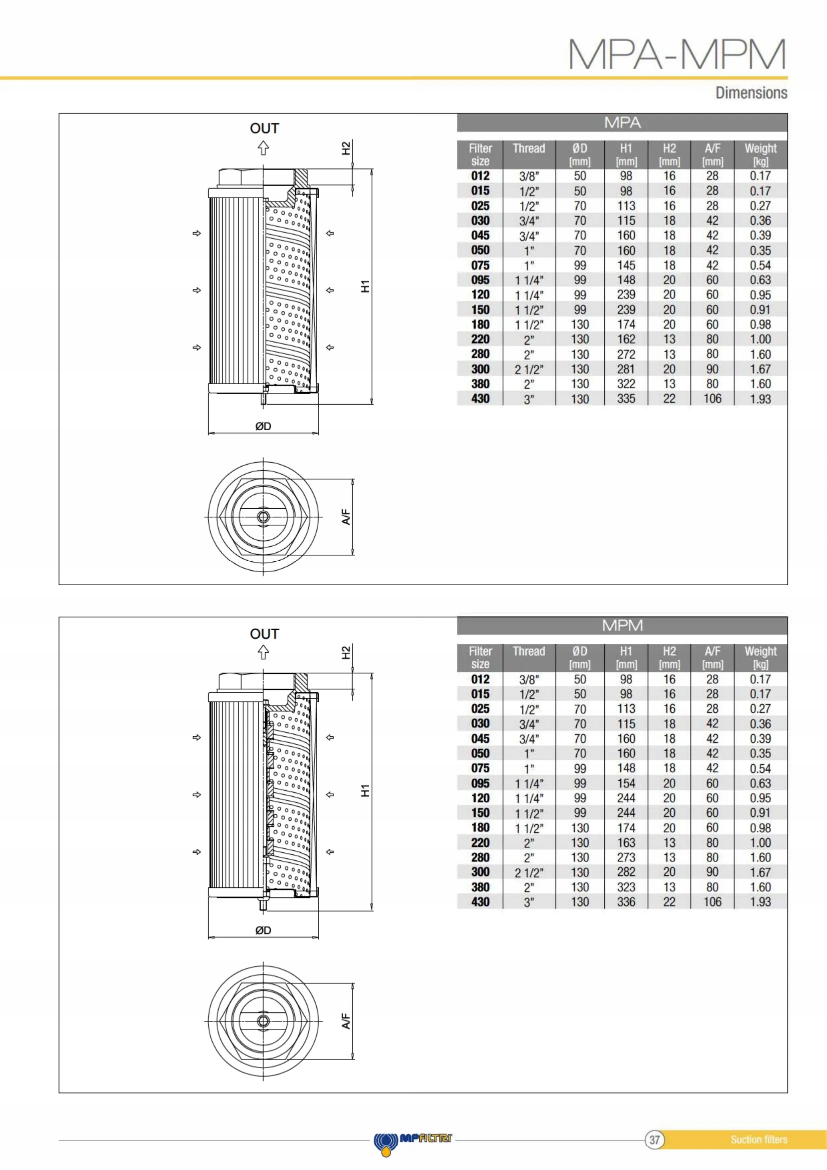 - Hydraul Filter Modina 6650. MPA 280G1M125