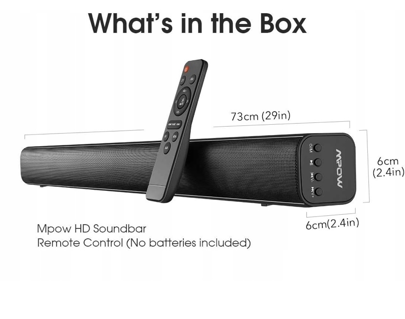Просматривая «MPOW Soundbar BH375A Bluetooth USB Aux Dinker», вы можете быть уверены, что данный товар из каталога «Soundbary» будет доставлен из Польши и проверен на целостность. В цене товара, указанной на сайте, учтена доставка из Польши. Внимание!!! Товары для Евросоюза, согласно законодательству стран Евросоюза, могут отличаться упаковкой или наполнением.