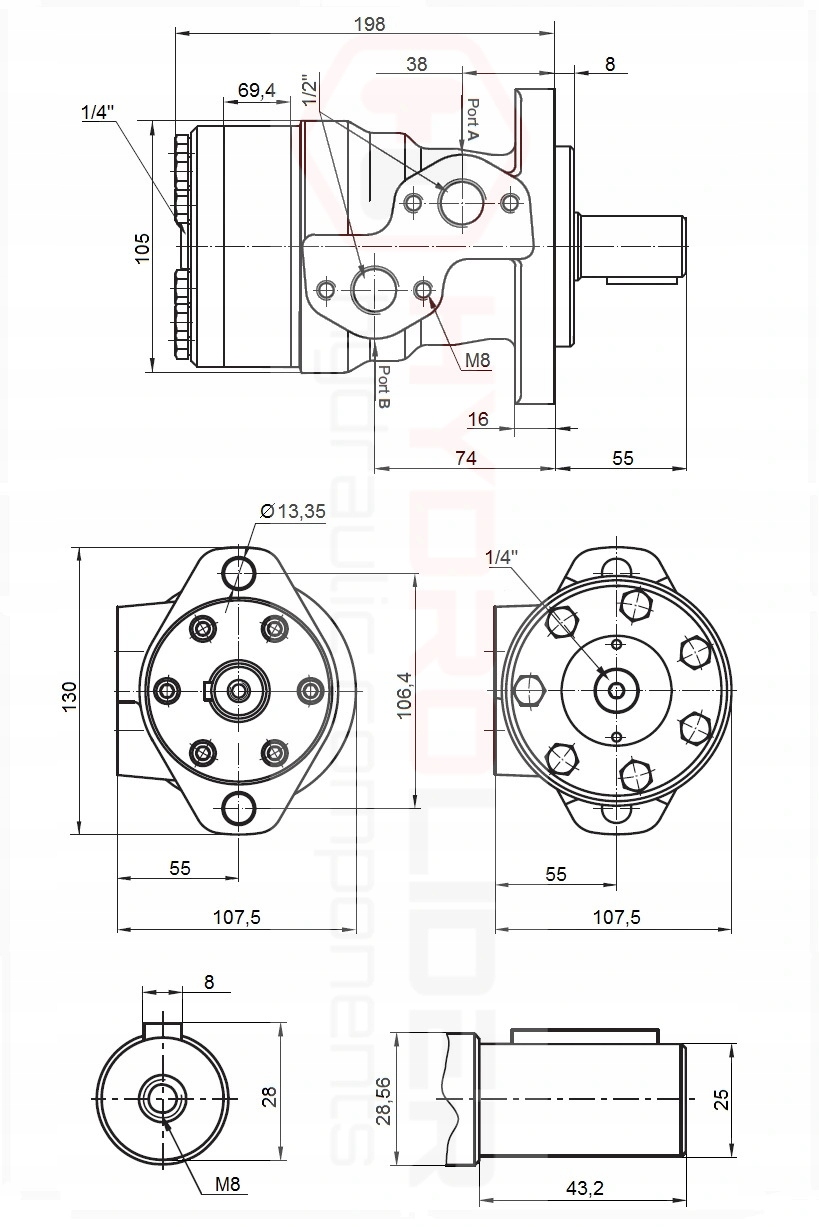 двигуни з однаковими розмірами, залежно від походження та виробника BMR, SMR, BMP, OMP, EMP та інших