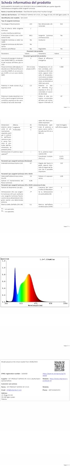 - Потужність: 2,4 Вт (еквівалентно 20 Вт галогенних ламп)