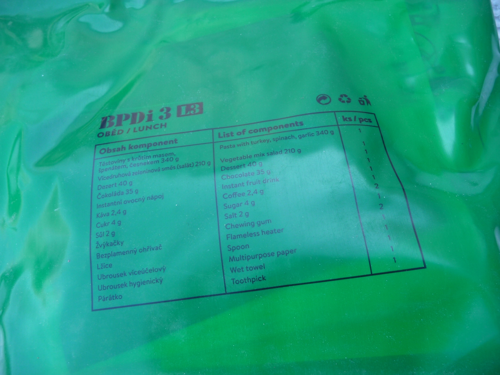 Чехія вечеря продовольство Ration L3 + PP-D пакет аксесуарів