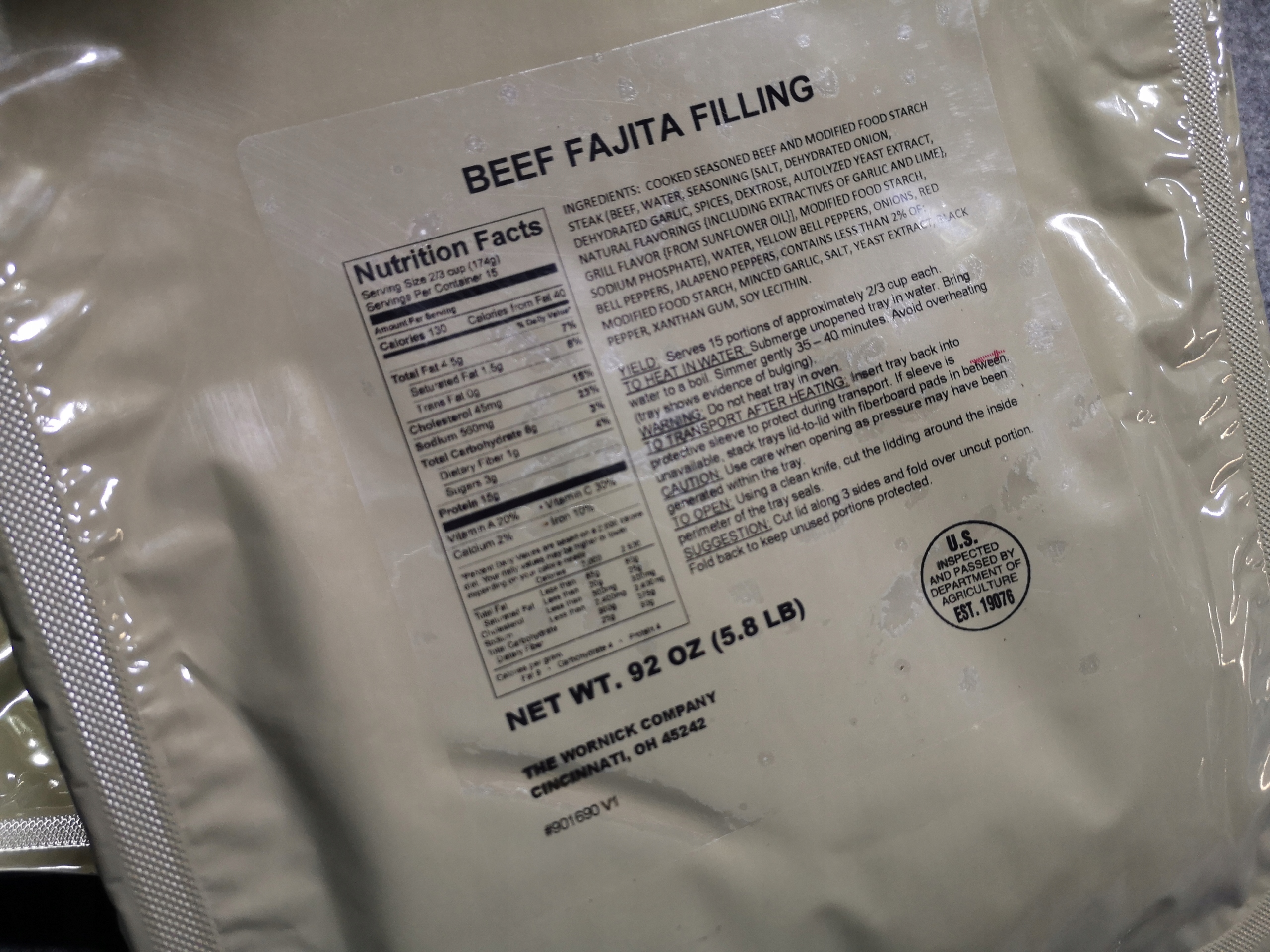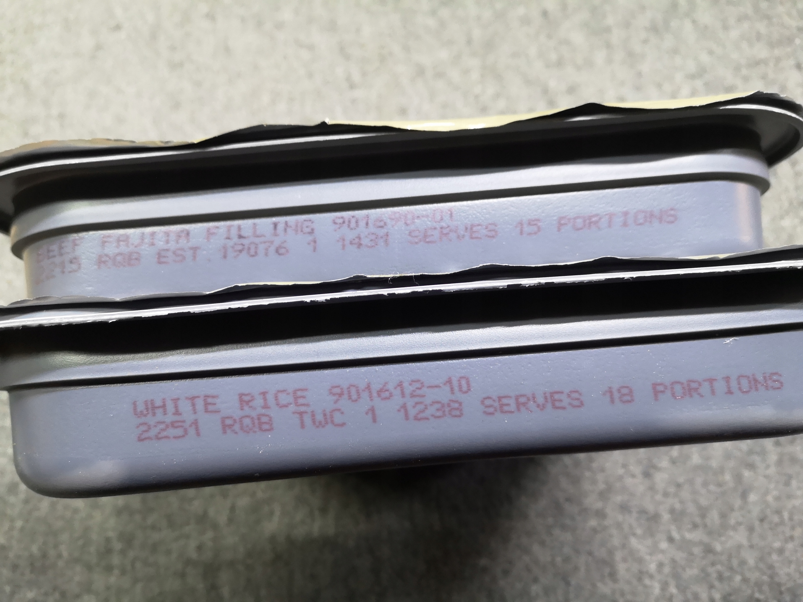 Яловичина фахіта (1 лоток = 15 порцій) + рис (1 лоток = 18 порцій) з раціону групи MRE