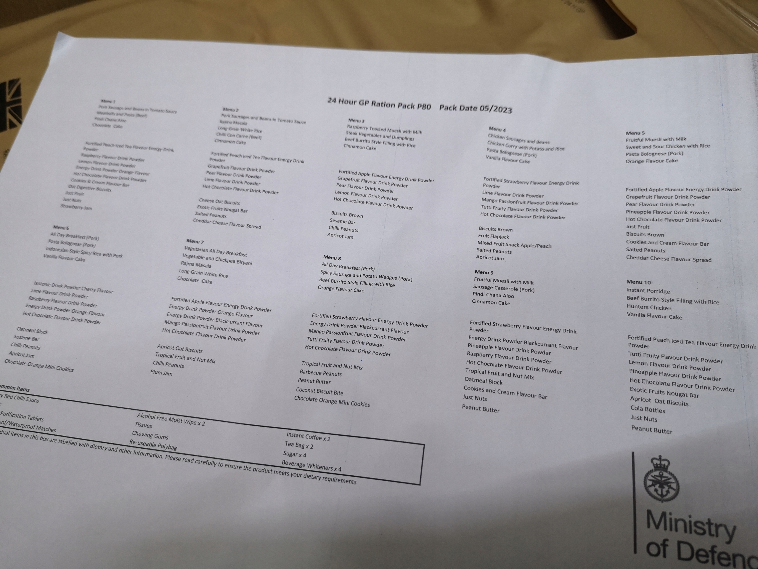 Британський 24-годинний індивідуальний раціон харчування