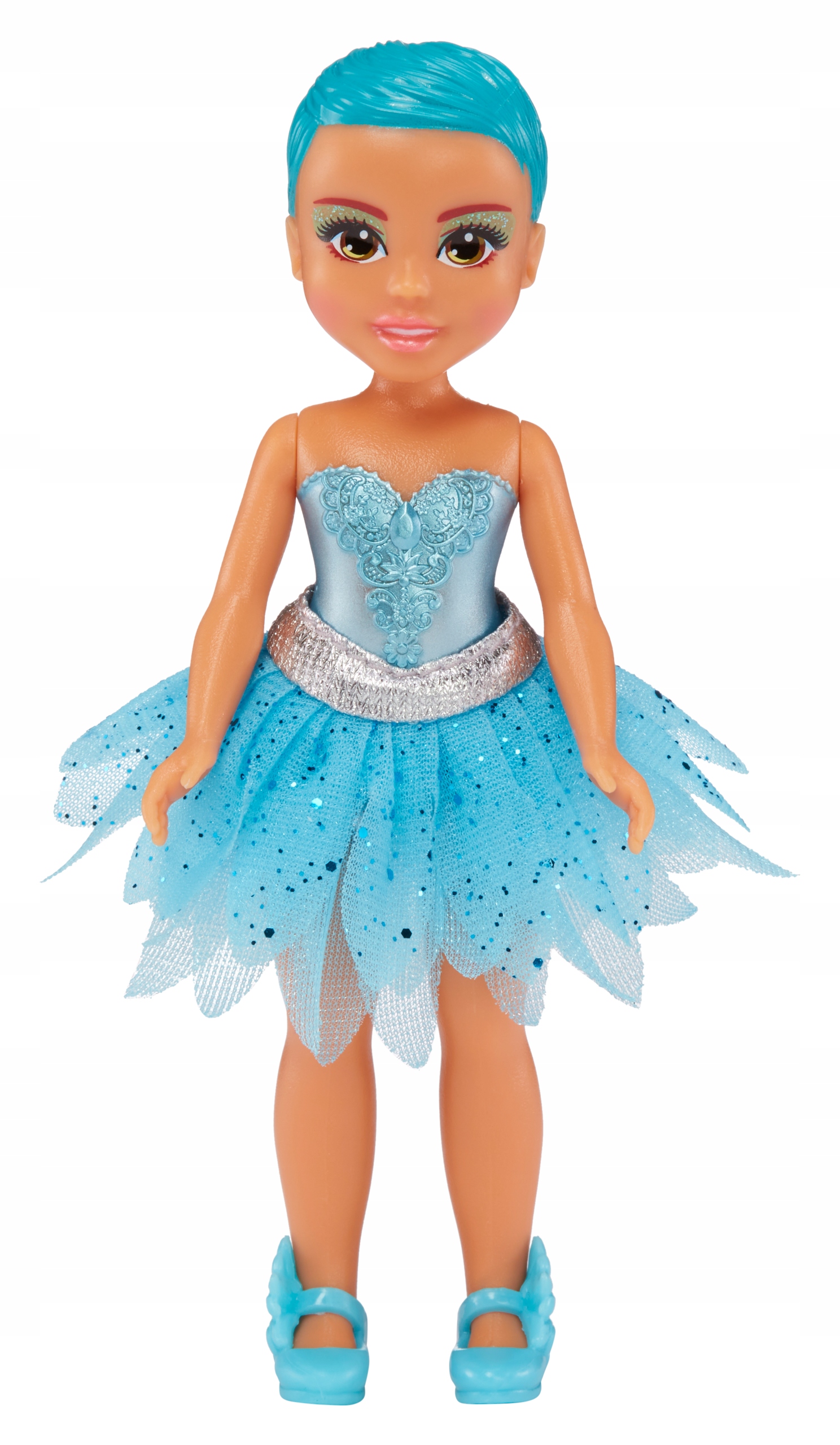МОДНА УЯВА: DreamBella має блискучу блакитну багатошарову спідницю з крильцями, які кріпляться до її спини. , перуку та взуття з квітковим мотивом.