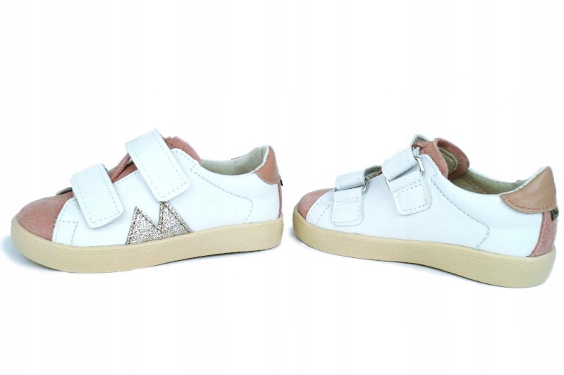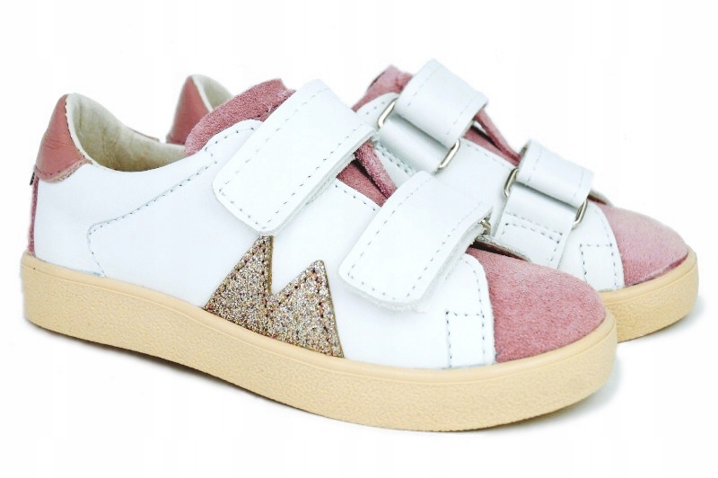НОВА МОДЕЛЬ Mrugała, кросівки для дівчинки. Гнучка підошва дозволяє дитячим ніжкам вільно рухатися, а жорсткі каблуки забезпечують правильну стабілізацію маленьких ніжок. Виготовлений повністю з високоякісної натуральної шкіри. Підкладка та підкладка з натуральної шкіри забезпечують гігієнічність.