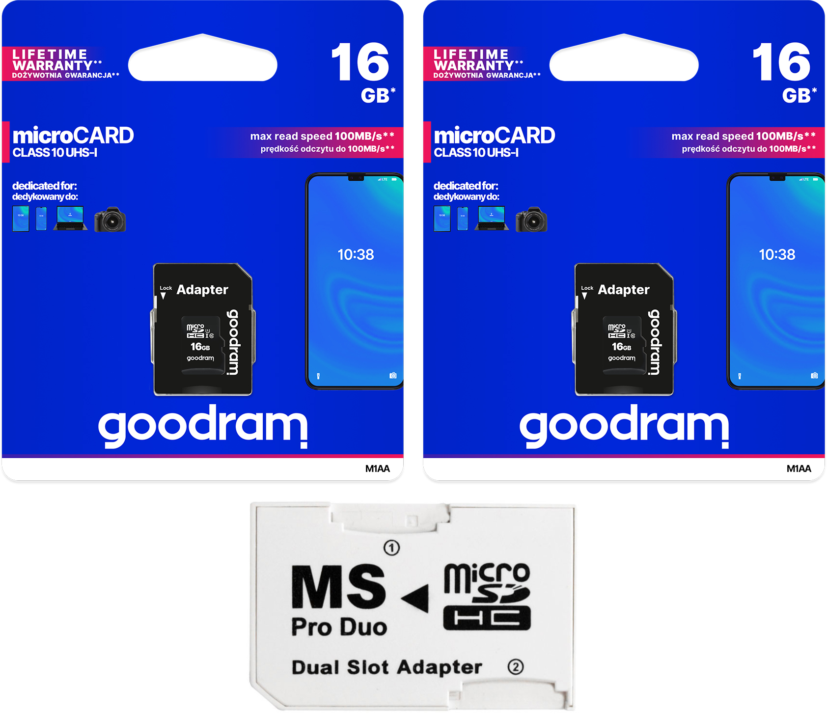 ( 2 x GOODRAM mSDHC 16GB CLASS 10 UHS-I + АДАПТЕР SD ) + АДАПТЕР MS PRO DUO