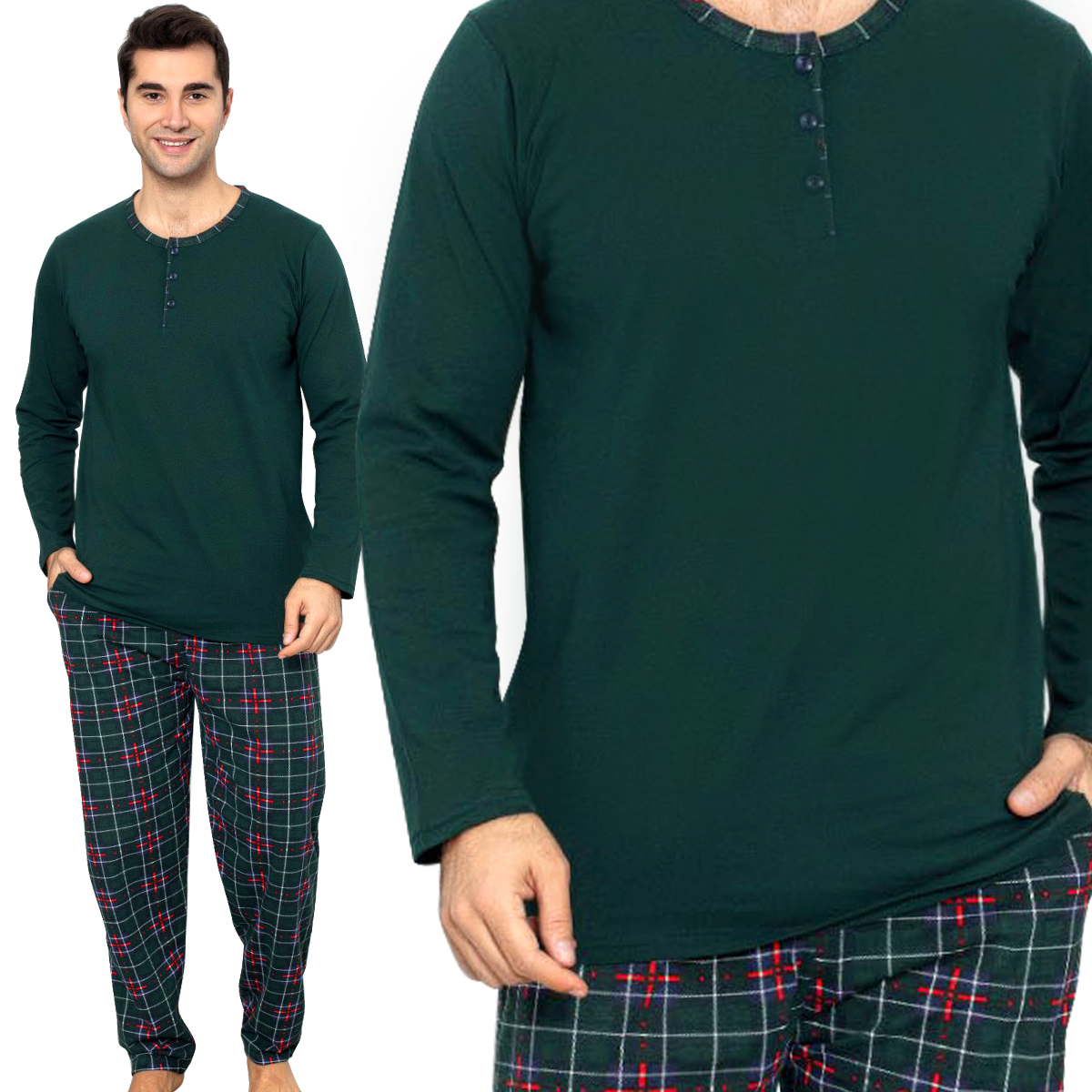 MĘSKA PIŻAMA BAWEŁNIANA DŁUGI RĘKAW KIESZENIE