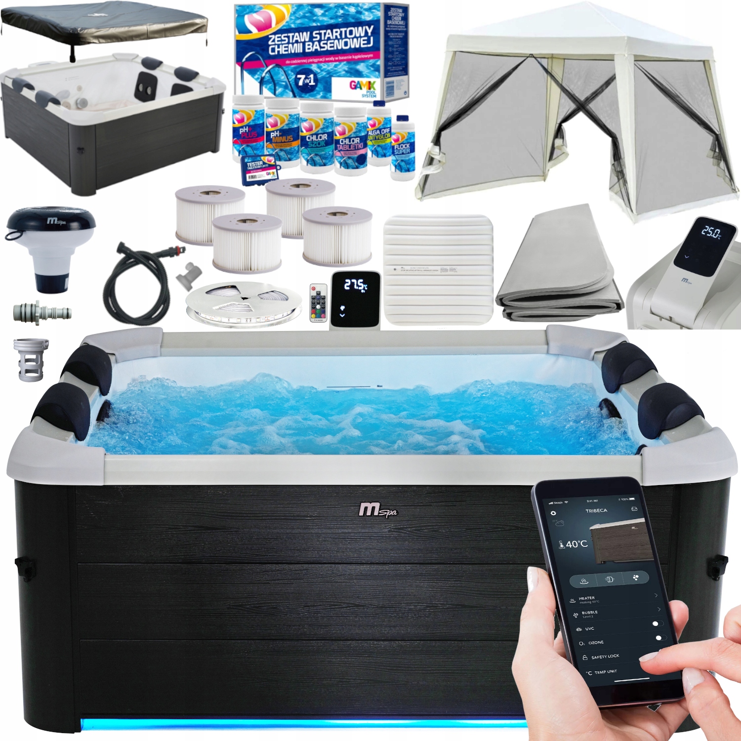 MSpa ПАНЕЛЬНЕ ОСЛО Жорсткий 6ос ОЗОН БАТОГ Гідромасаж WIFI SPA LED + ПАВІЛЬЙОН