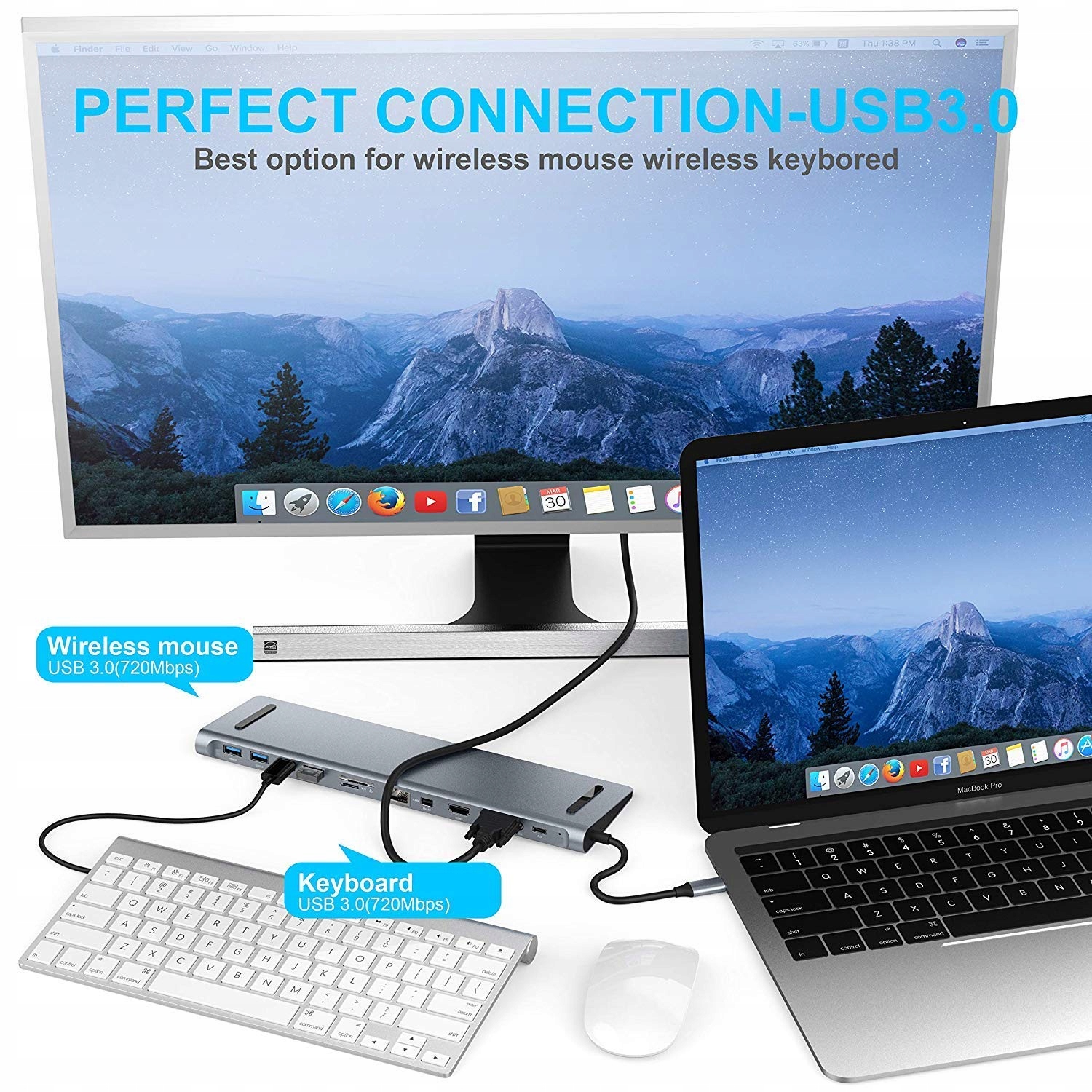 MST USB C Hub, Multi-Port USB 3.0 12 in 1, Secure Charging Dock, Audio, 4K HDMI, VGA, Gigabit Ethernet, Micro/SD Card Reader для iMac Pro, Chromebook, MacBook Pro 2018 , 2017 , 2016 та найновіший
