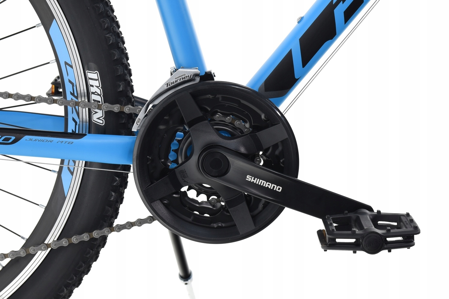 Алюмінієвий кривошип Shimano FC-TY301 з довжиною плеча 170 мм. Три передачі з кількістю зубів 42/34/24 для найнижчої передачі, забезпечуючи таким чином відповідні робочі лінії ланцюга. Розроблений для 3x7 та рідких накопичувачів та надійного перемикання передач, завдяки подвійній системі SIS