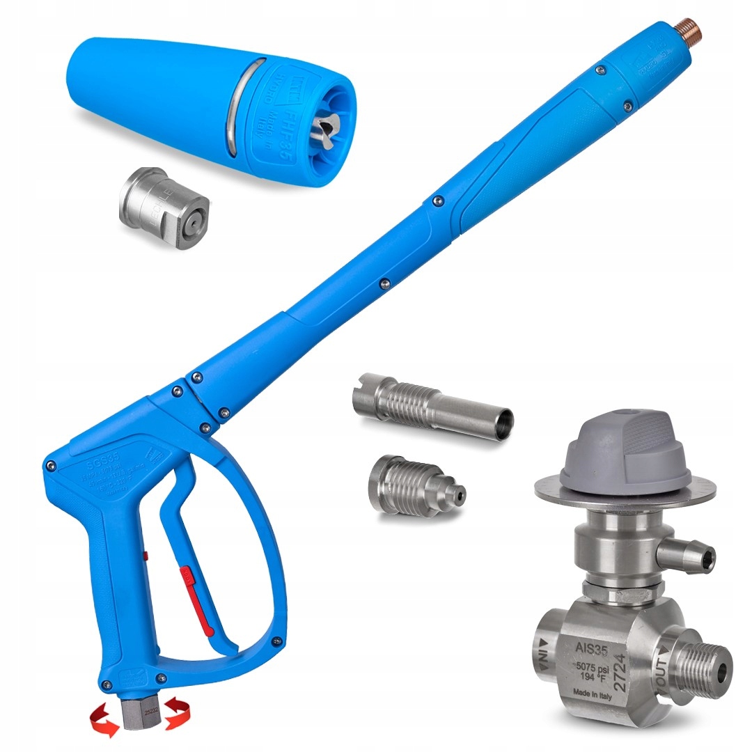 Інжектор з нержавіючої сталі з піною високого тиску, яка встановлюється, наприклад, за допомогою трійника між вихідним отвором високого тиску і оригінальний розпилювальний блок, спеціально розроблений для професійного чищення вантажівок у транспортних або харчових компаніях, а також для чищення промисловою піною.