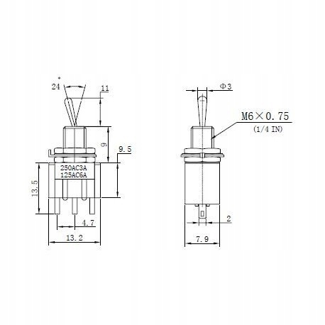 МТС-123 ВАЖІЛЬ ПЕРЕМИКАЧ (ВКЛ.)-ВИМК.-(ВКЛ.) ІМПУЛЬСНИЙ 3А-250В