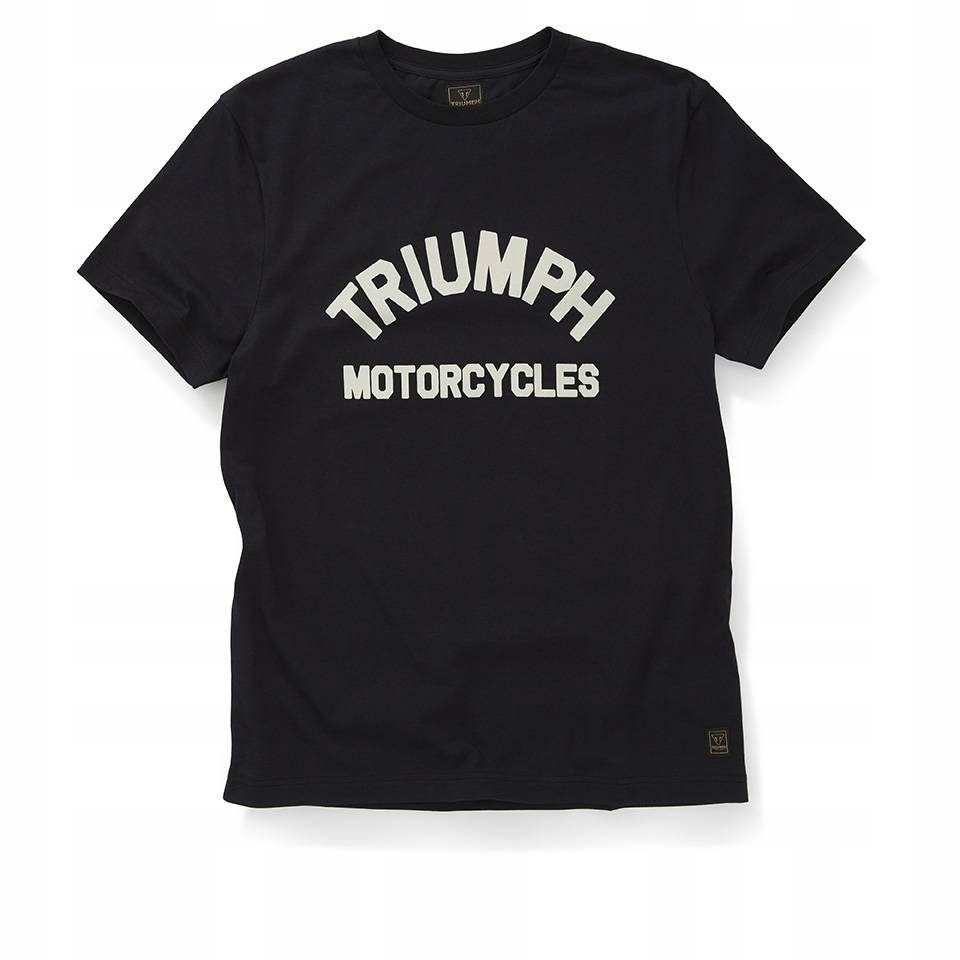 Бавовняна футболка Jet Black зі стилізованим, м’яким пігментованим написом Triumph Motorcycles білого кольору на грудях і новим фірмовим значком Triumph на нижньому краю. .