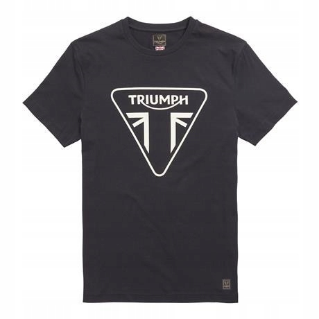 Класична чорна футболка зі 100% бавовни з високоякісним офіційним логотипом Triumph білого кольору та новою характерною нашивкою з тканим логотипом Triumph у нижній частині.