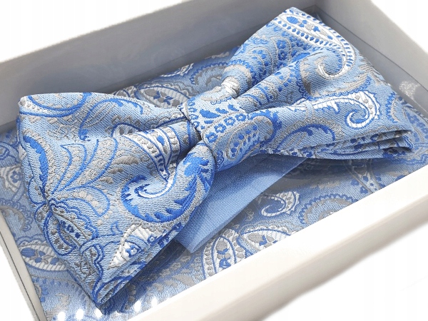 Mucha Blue Bow Tie з візерунками + кишеньковий квадрат