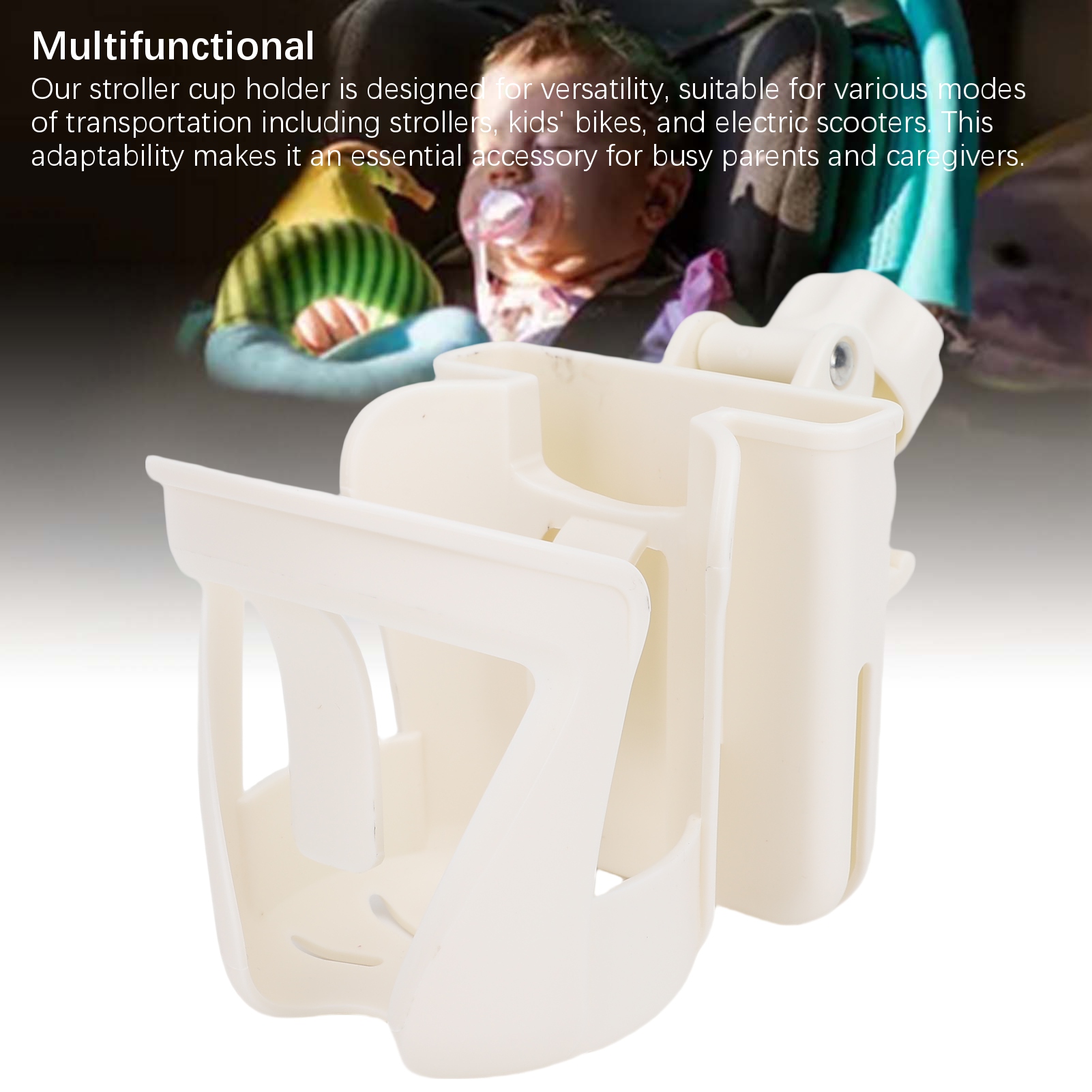 1. Багатофункціональний: наш власник чашки призначений для універсальності, підходить для різних способів транспортування, включаючи коляски, велосипеди для дітей та електричні скутери. Ця пристосованість робить його необхідним аксесуаром для зайнятих батьків та опікунів.