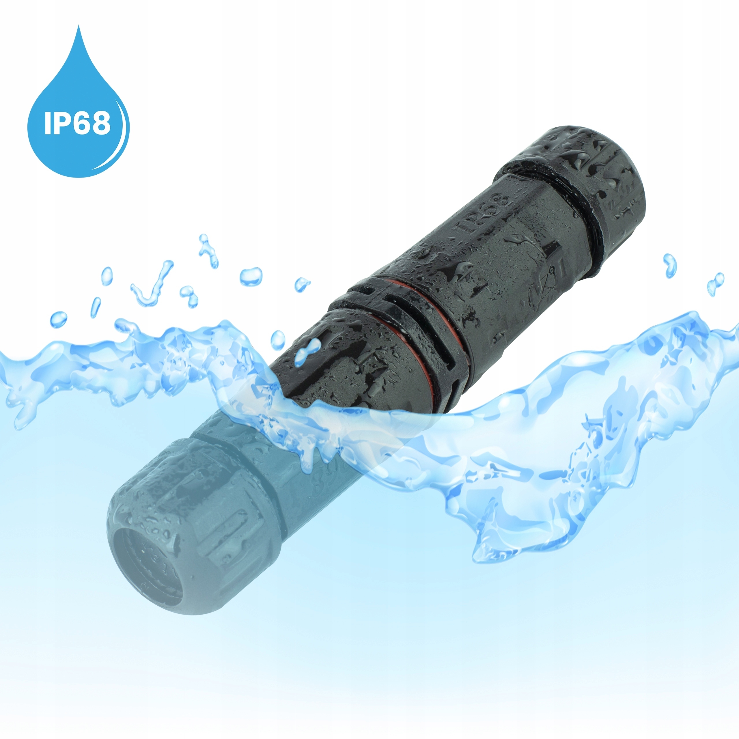 Захист від проникнення IP68< /b > забезпечує захист від впливу тривалого занурення у воду, тому його можна залишити в місцях з підвищеною вологістю або закопати з'єднання в землю (при підземному монтажі рекомендуємо додатково закріпити з'єднання, наприклад, з самоклеючою стрічкою або герметичною коробкою з гелевим наповненням).