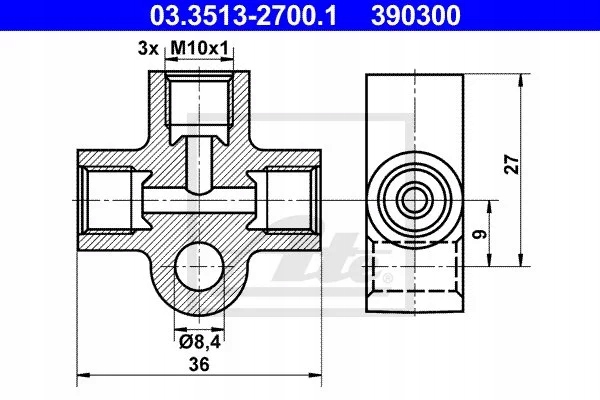 - Розмір різьби : M10x1. 1/відстань між отворами 2: 9,0/27,0