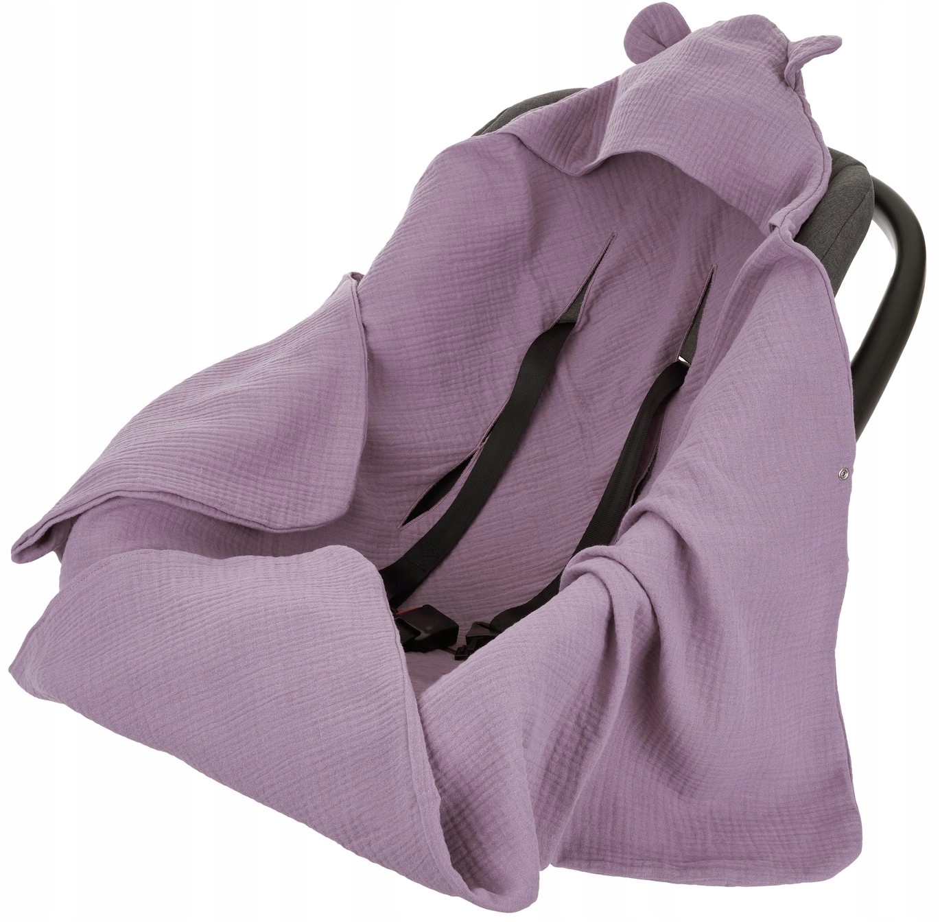 MUŚLINOWY OTULACZ DO FOTELIKA KOCYK LETNI Z KAPTURKIEM
