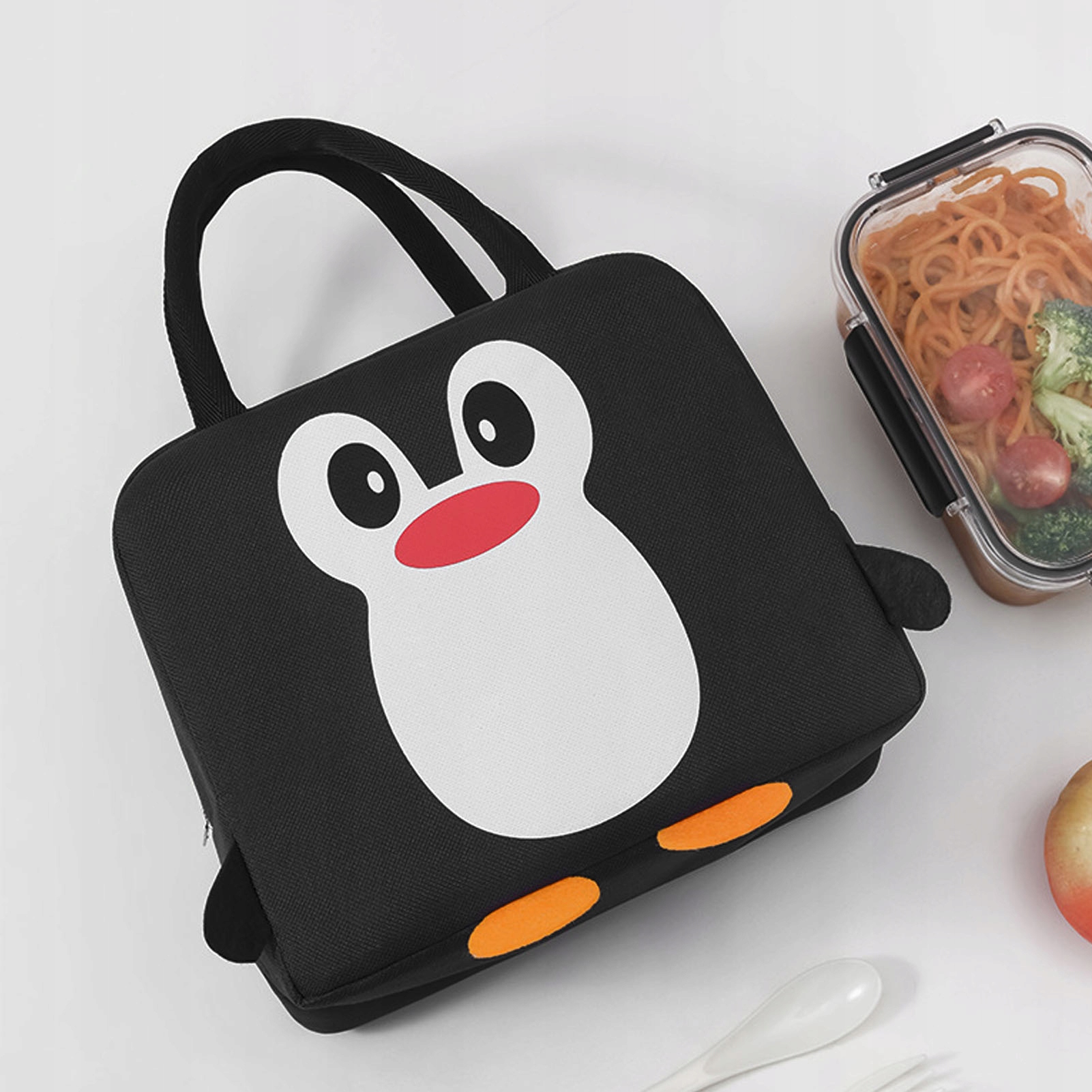 Функція: 1. Чарівний дизайн мультфільмів: мішок на обід був розроблений з унікальним малюнком пінгвінів, який привертає увагу дітей та додає трохи веселощів під час обіду.