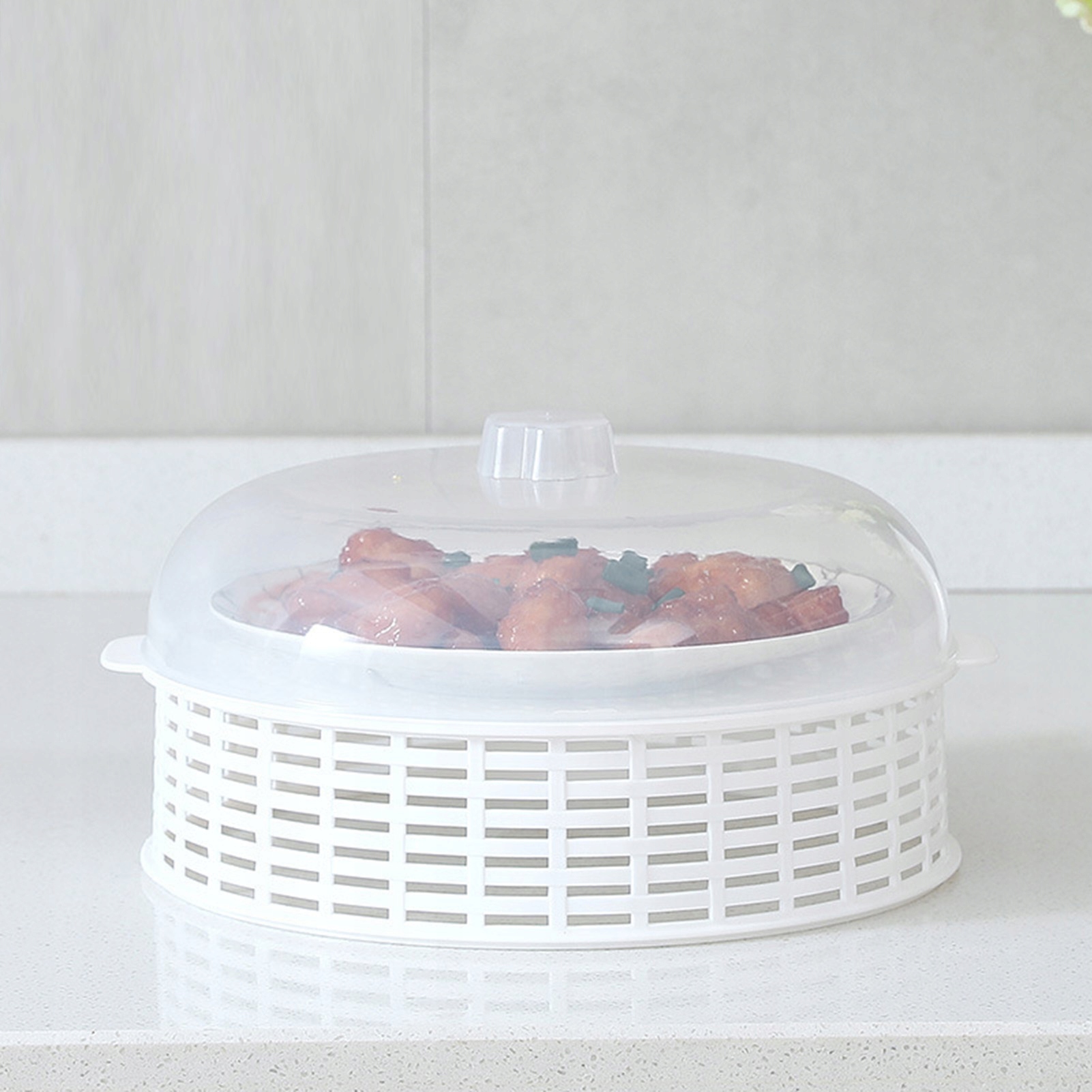 Функція: 1. Багатошарова порожнеча: багаторазова овочева кришка має унікальну структуру, з багатьма порожніми шарами, прикріпленими для зливу та підтримки свіжості помад.