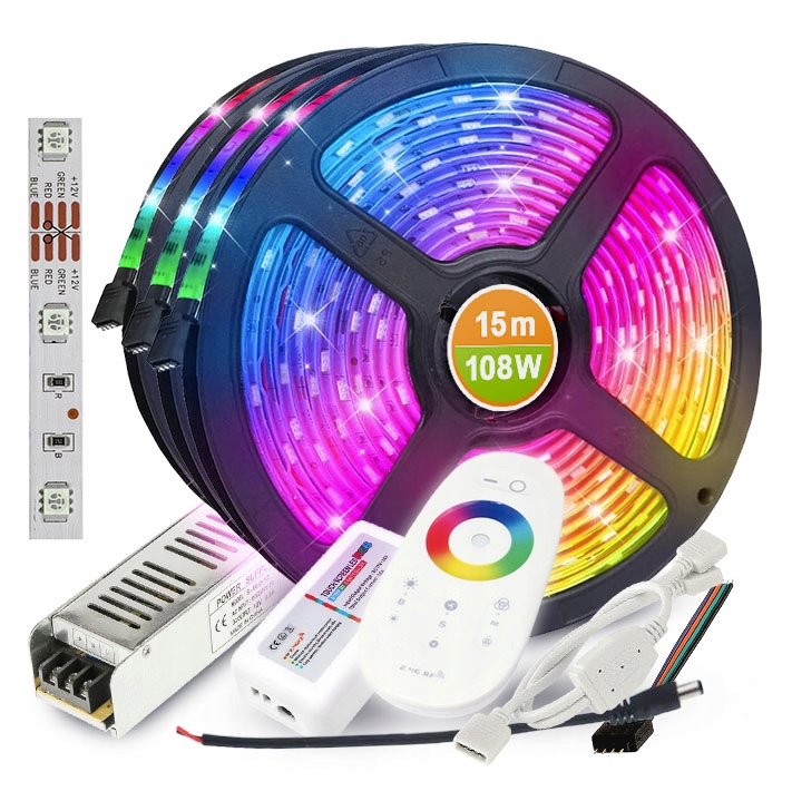 Multi 15m RGB світлодіодні стрічки комплект + пульт дистанційного керування адаптер живлення