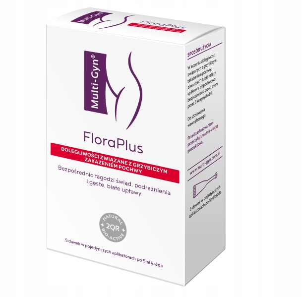 Multi-Gyn FloraPlus безпосередньо знімає свербіж, подразнення та густі білі виділення. Це препарат на основі натуральних інгредієнтів і поєднання запатентованого комплексу 2QR з пребіотичними інгредієнтами. Комплекс 2QR - це натуральна речовина рослинного походження з унікальною здатністю захищати ніжний вагінальний епітелій від шкідливих бактерій і дріжджів безпечним і природним способом. Пребіотики підтримують «хороші» лактобактерії (Lactobacillus) для відновлення оптимальної вагінальної бактеріальної флори. Ця унікальна комбінація робить Multi-Gyn FloraPlus ідеальним препаратом для лікування вагінальних захворювань, викликаних грибками, а також для відновлення оптимального pH і вагінального середовища.