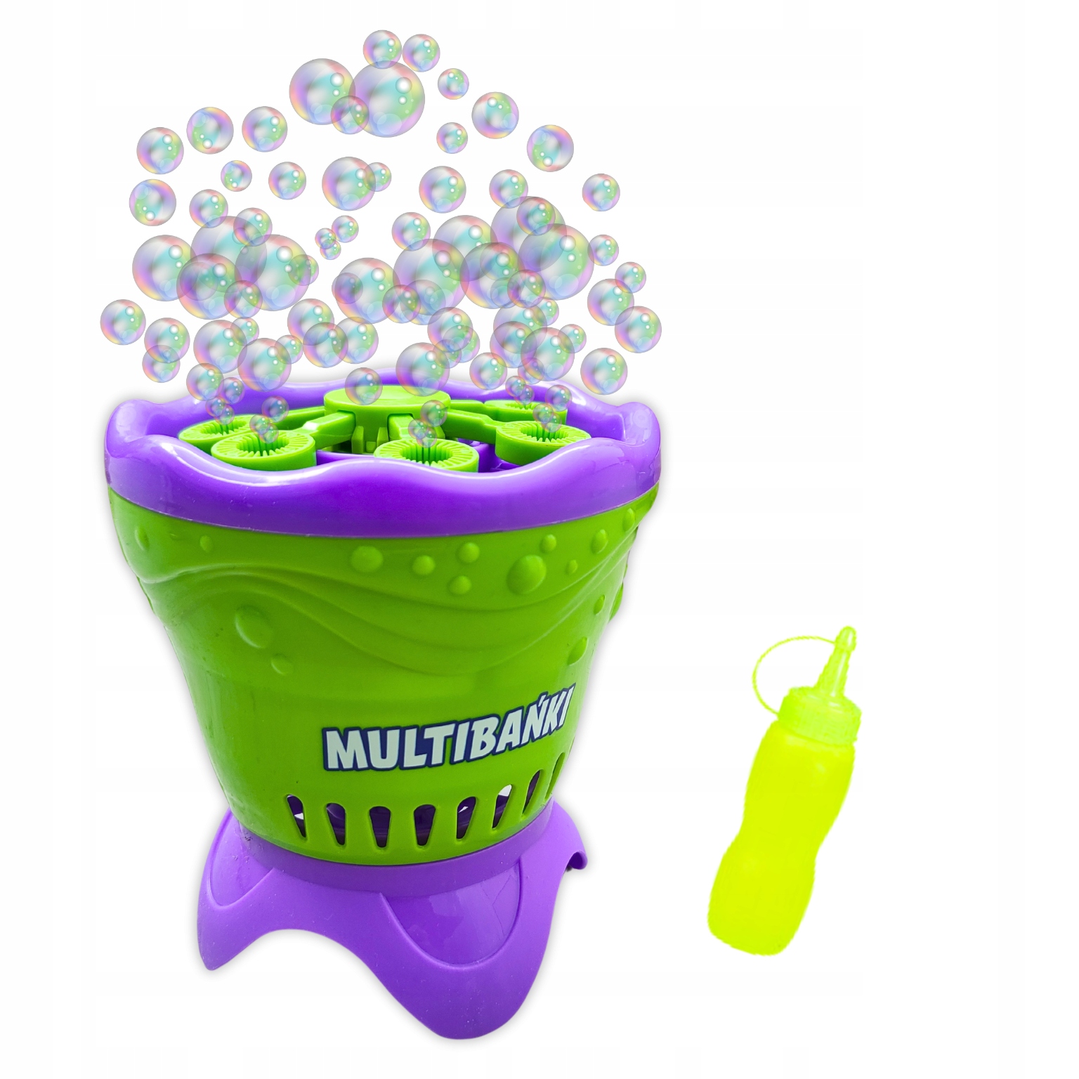 Подаруйте дітям нескінченну радість завдяки чудовому генератору мильних бульбашок. Цей чарівний набір - ідеальна розвага для маленьких і старших дітей. У набір входить генератор з підставкою і пляшка з купіруючою рідиною! Повний комплект, який дозволяє швидко почати грати.