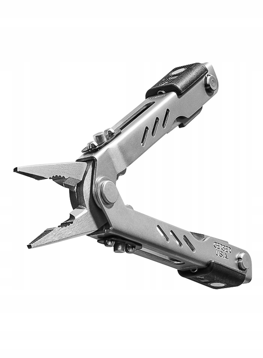 Щипці багатофункціонального інструменту Gerber подовжуються за допомогою спеціально розроблених рейок, що виявляється надзвичайно зручним рішенням. Вони мають спереду плоский профіль, зубчасту частину в одній половині, а на кінці — пристрій для різання кабелів і проводів. Це дозволить вам виконувати електромонтажні роботи, а також закручувати шурупи та видаляти старі іржаві цвяхи.