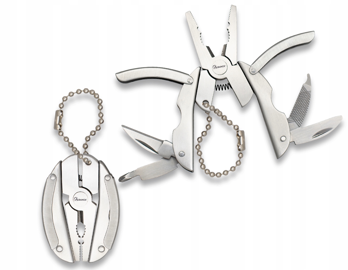 Мультитул Mini Albainox 11148 — це невеликий багатофункціональний інструмент загальною довжиною 7,5 см, лезом довжиною 2,7 см і товщиною 1,5 мм, виготовленим зі сталі 3Cr13Mov. Він важить 46 г, що робить його легким і зручним. Він оснащений такими функціями, як ніж, хрестова і плоска викрутка, напилок і патент, а також має брелок, що дозволяє зручно носити його як брелок. Його форму натхненно жуком, що підкреслюється його компактним і практичним дизайном127.