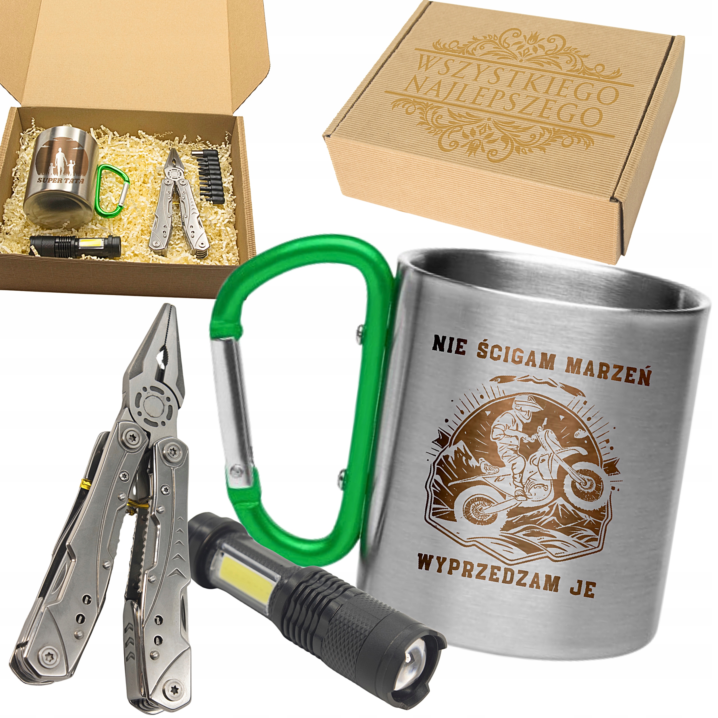 ⏩ Чудово Ви прийшли до правий місце! Всім цим вимогам відповідає наш набір, до якого входять металева кухоль з карабіном і дуже міцним гравіюванням, багатофункціональний мультитул і ліхтарик. Все це упаковано в красиву коробку з графікою на ваш вибір.