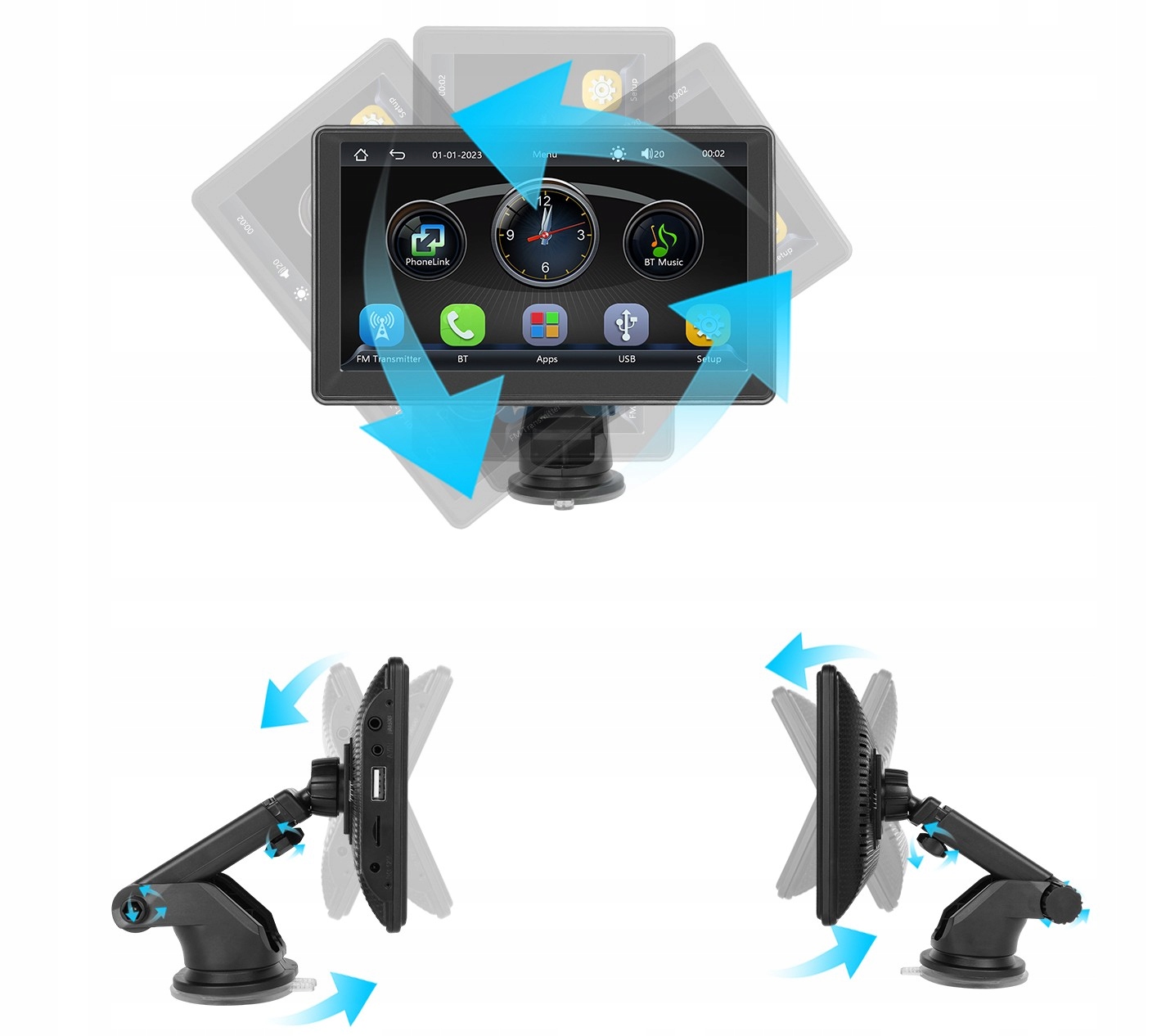 ✅ Повністю регульований кут нахилу - екран можна нахиляти вгору, вниз і під будь-яким кутом, забезпечуючи зручність використання та кращу видимість під час водіння.