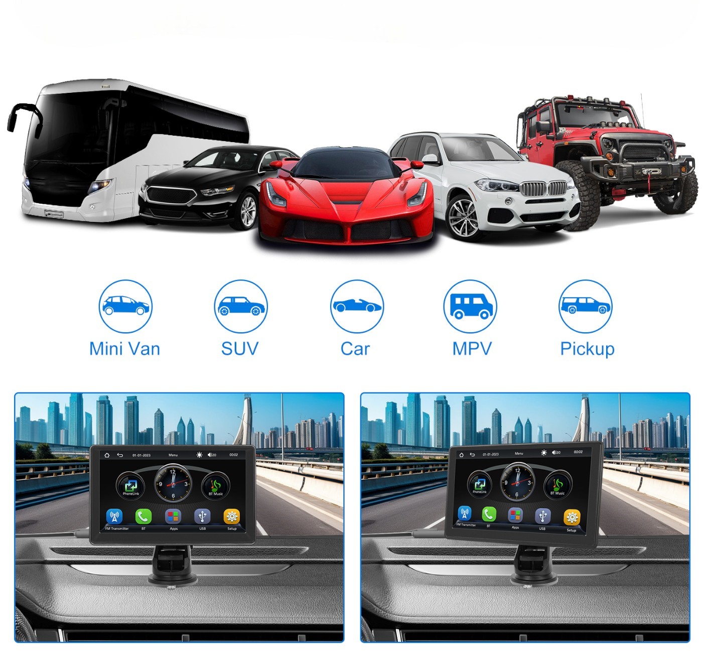 ✅ Наша мультимедійна станція оснащена якісним 7-дюймовим сенсорним екраном. Підключіть свій смартфон і насолоджуйтеся бездротовими функціями Android Auto і CarPlay. Вбудований комплект гучного зв’язку підвищує безпеку під час водіння та допомагає уникнути штрафів.
