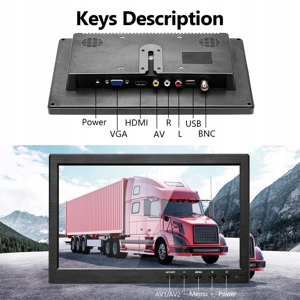 АВТОМОБІЛЬНИЙ МОНІТОР 10.1" HD HDMI VGA AV РЕГУЛЬОВАНА БАЗА З БЛОКОМ ЖИВЛЕННЯ