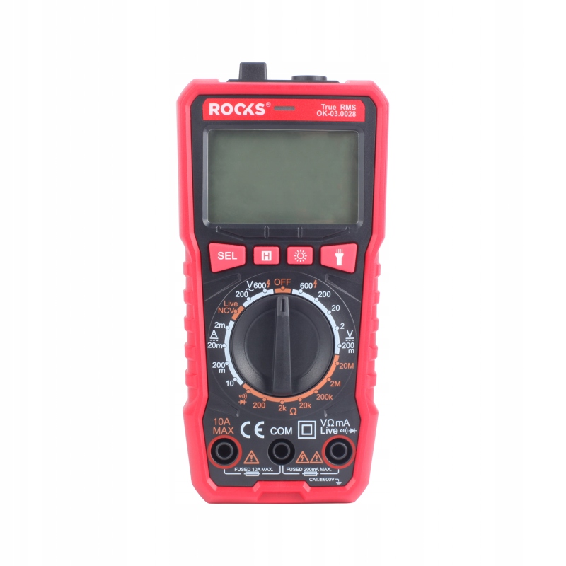 ROOKS пропонує відмінний прилад для перевірки основних параметрів струму в електроустановках з напругою до 600В. Це цифровий мультиметр із великим РК-дисплеєм, шириною 3 1/2 цифри та ручним вибором діапазонів вимірювань. Прилад має стабільну роботу, високу точність, високу надійність і функцію захисту від перевантаження. Живиться від батарейок 1,5 В 2хААА. Він маленький і його зручно носити, має підсвічування РК-екрана та додатковий вбудований ліхтарик для освітлення місця вимірювання.