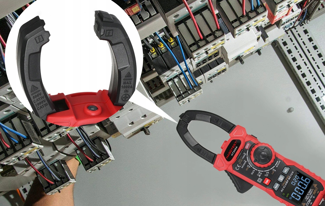 HT208A – це практичний пристрій, за допомогою якого ви можете перевірити значення різних параметрів, наприклад, напруга і струм змінного і постійного струму, опір, температура, пусковий струм і багато інших. Продукт забезпечує точні вимірювання, результати яких потім відображаються на РК-екрані. HT208A також має ліхтарик, який дозволяє комфортно працювати в темних приміщеннях.