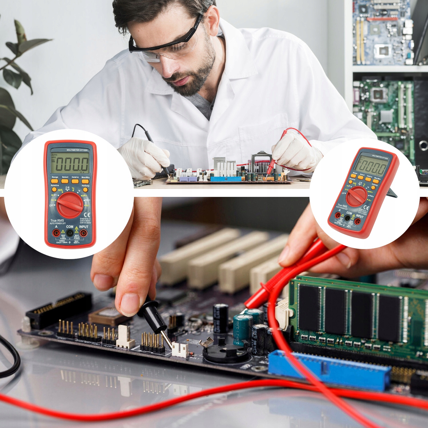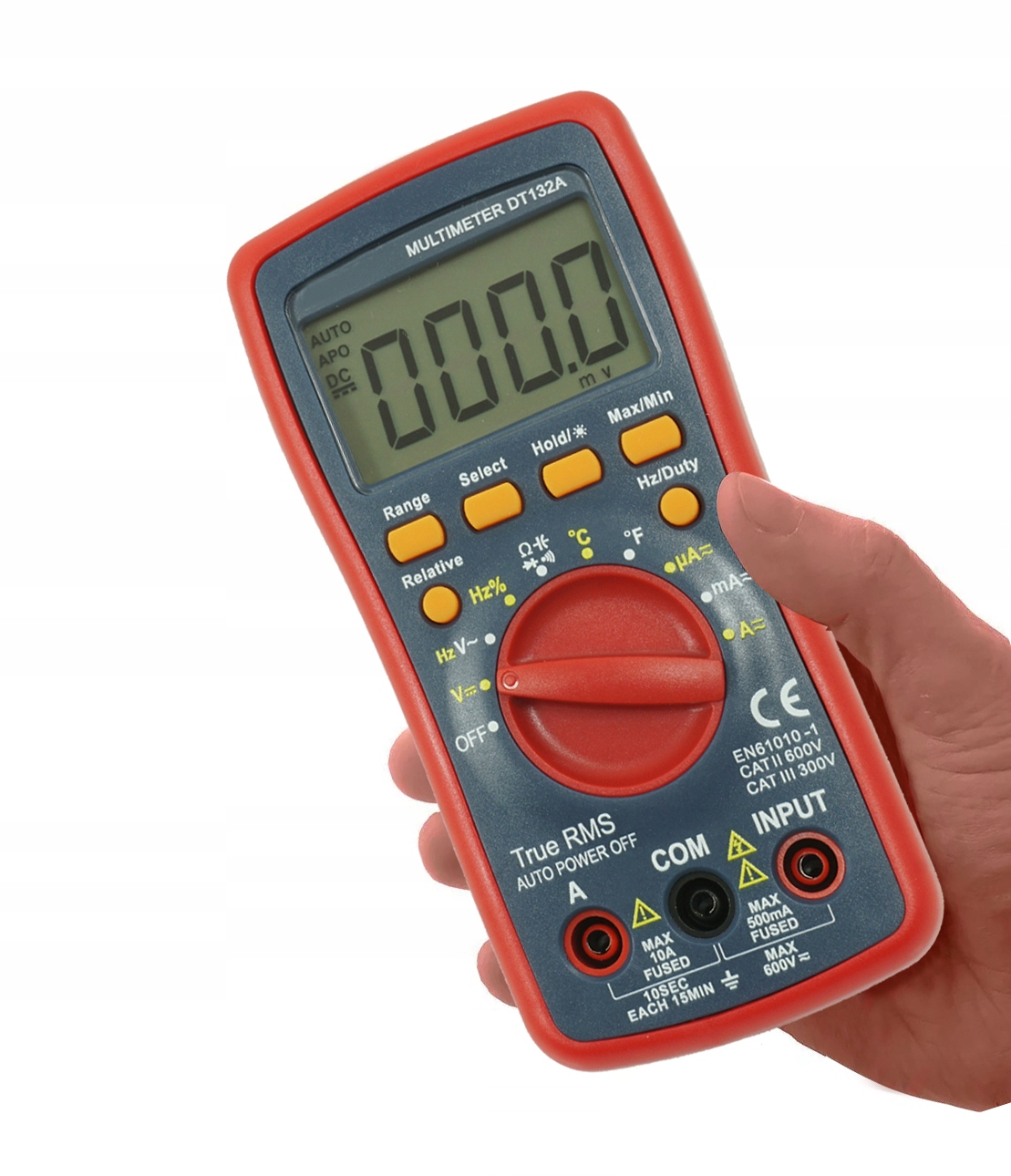 TRUE RMS - вимірювач обчислює реальне ефективне значення змінної напруги та струму як для синусоїдальної, так і для несинусоїдальної форм сигналу. Пристрій спочатку вимірює фактичне значення синусоїди через кілька інтервалів часу, потім зводить результати вимірювань у квадрат, підсумовує їх, обчислює середнє значення і, нарешті, зводить середній результат у квадрат. Результатом вимірювання є реальне ефективне значення змінної напруги/струму навіть для деформованої синусоїди. Це вимірювальний прилад із цифровим дисплеєм 3 3/4 і максимальним результатом 3999 із автоматичним налаштуванням діапазону вимірювання.