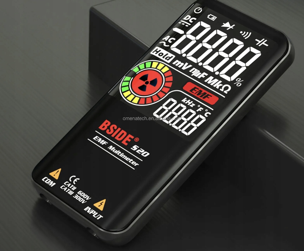 BSIDE S20 — це багатофункціональний мультиметр, який пропонує широкий діапазон вимірювань. Окрім функції детектора випромінювання електромагнітного поля, пристрій також може вимірювати змінну/постійну напругу, опір, ємність, частоту, діод, безперервність електрики та розпізнавати стандарт послідовного зв’язку.