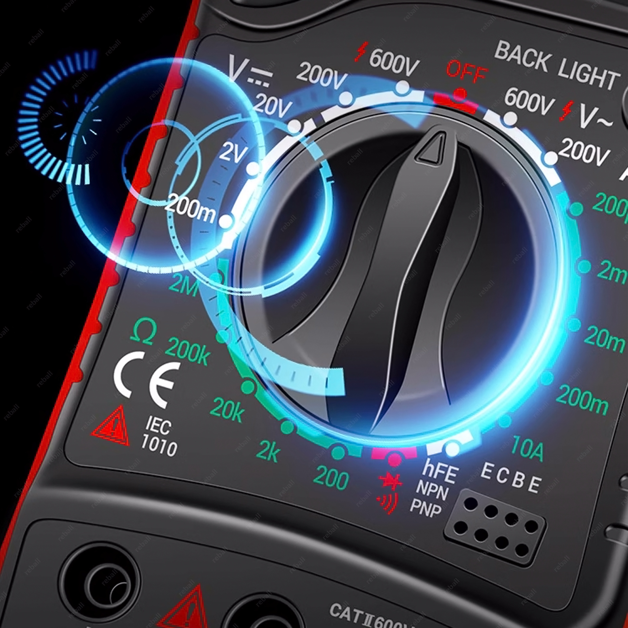 На додаток до основних вимірювальних функцій цифрових мультиметрів, таких як: вимірювання напруги, струму, опору, показники утримання, він також має посилення вимірювальні функції (hFE) NPN і PNP напівпровідникові біполярні транзистори, напівпровідникові діоди та звукова сигналізація опору менше 30 Ом (перевірка короткого замикання, безперервність з'єднання).