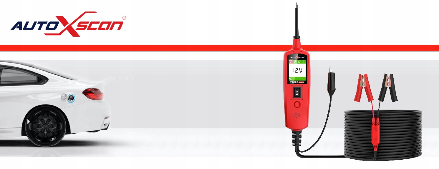 Тестер ланцюгів Autoxscan PS300PRO з функцією мультиметра (V). Він має вбудований тестер реле, датчик короткого замикання, відсутності заземлення, відсутності безперервності ланцюга тощо.